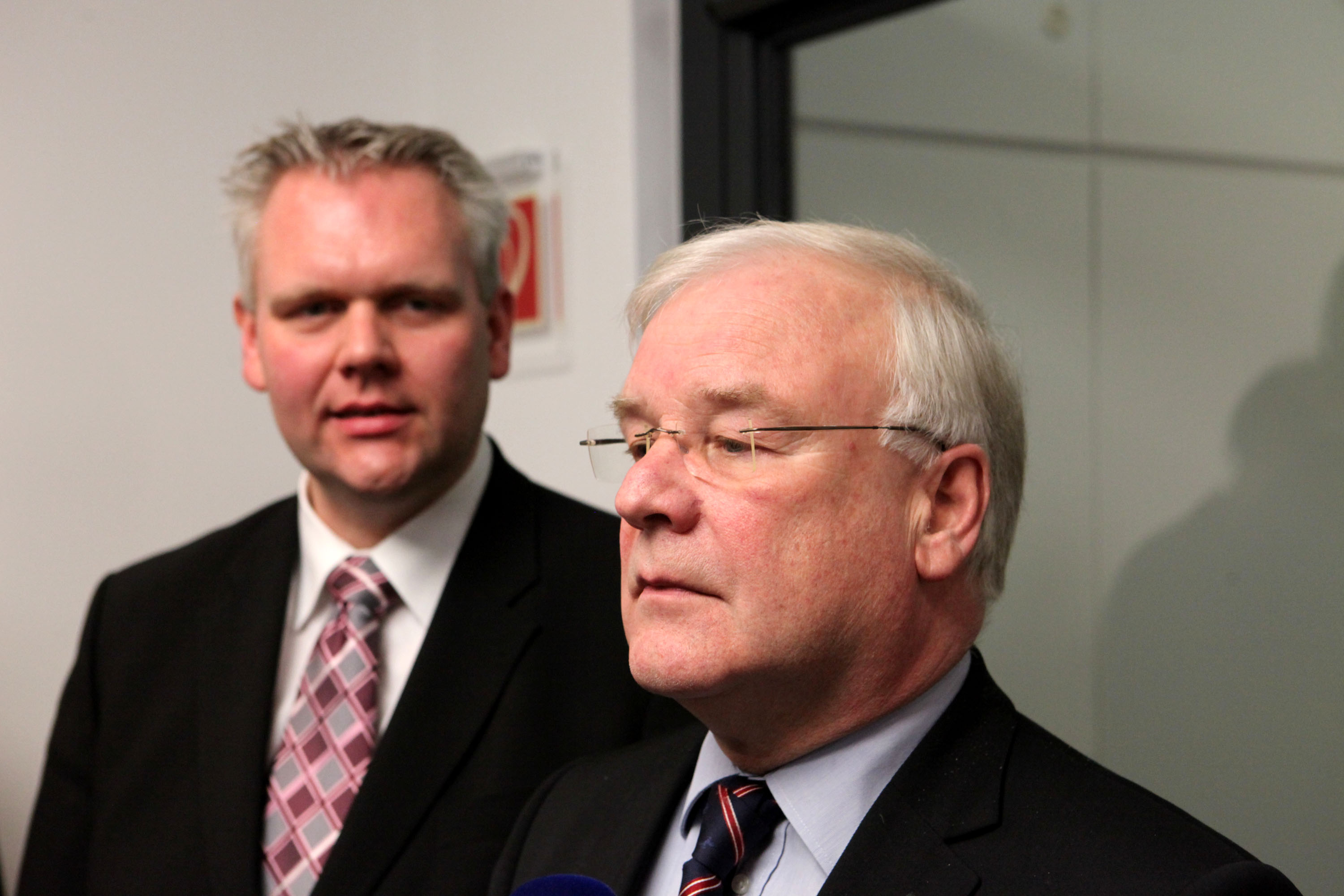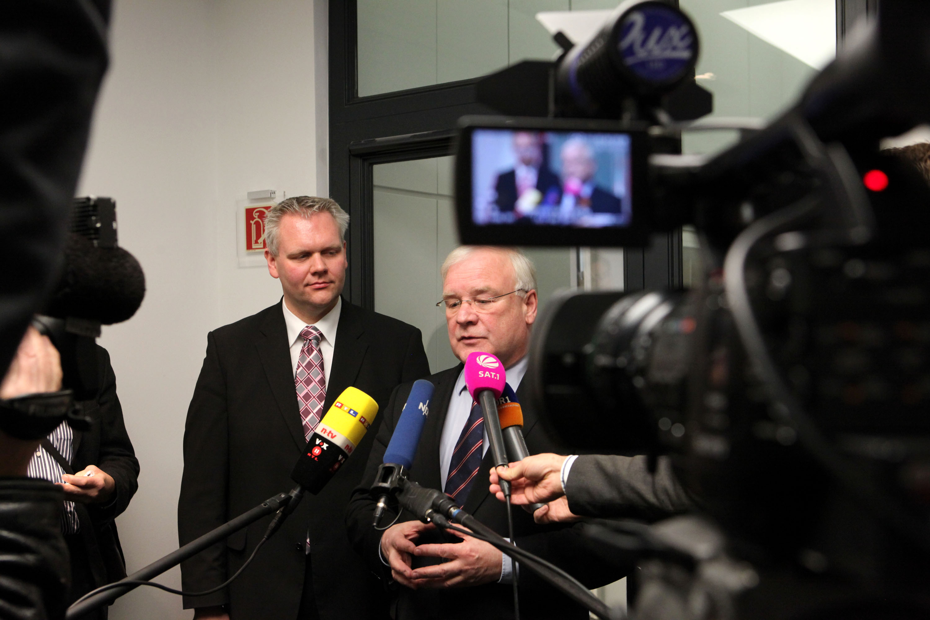 CDU Fraktion im niedersächsischen Landtag: Der noch amtierende Ministerpräsident David McAllister treibt sich vor der Fraktion herum und macht seine Späße mit Journalisten, während es in der neuen CDU-Fraktion schon zu ersten knappen Kampfabstimmungen kommt. Fraktionsvorsitzender Björn Thümler brachte zwar noch seinen Kandidaten Jens Nacke als Parlamentarischen Geschäftsführer glatt durch, aber der Vorschlag für das Amt des Landtagspräsidenten fiel mit 35:19 Stimmen auf Bernd Busemann. Seine Gegenkandidatin Vockert versuchte in einem weiteren Wahlgang, zumindest das Amt der Vizepräsidentin anzustreben, aber auch das war nicht von Erfolg gekrönt. McAllister feixte draußen: „Ich bin hier nur Hinterbänkler, und in Zukunft, da bleib ich auch erst mal Hinterbänkler.“ Daraufhin die Frage der Journalisten, ob das denn in Berlin auch schon alle wissen? Da konnte McAllister nur mit den Schultern zucken.