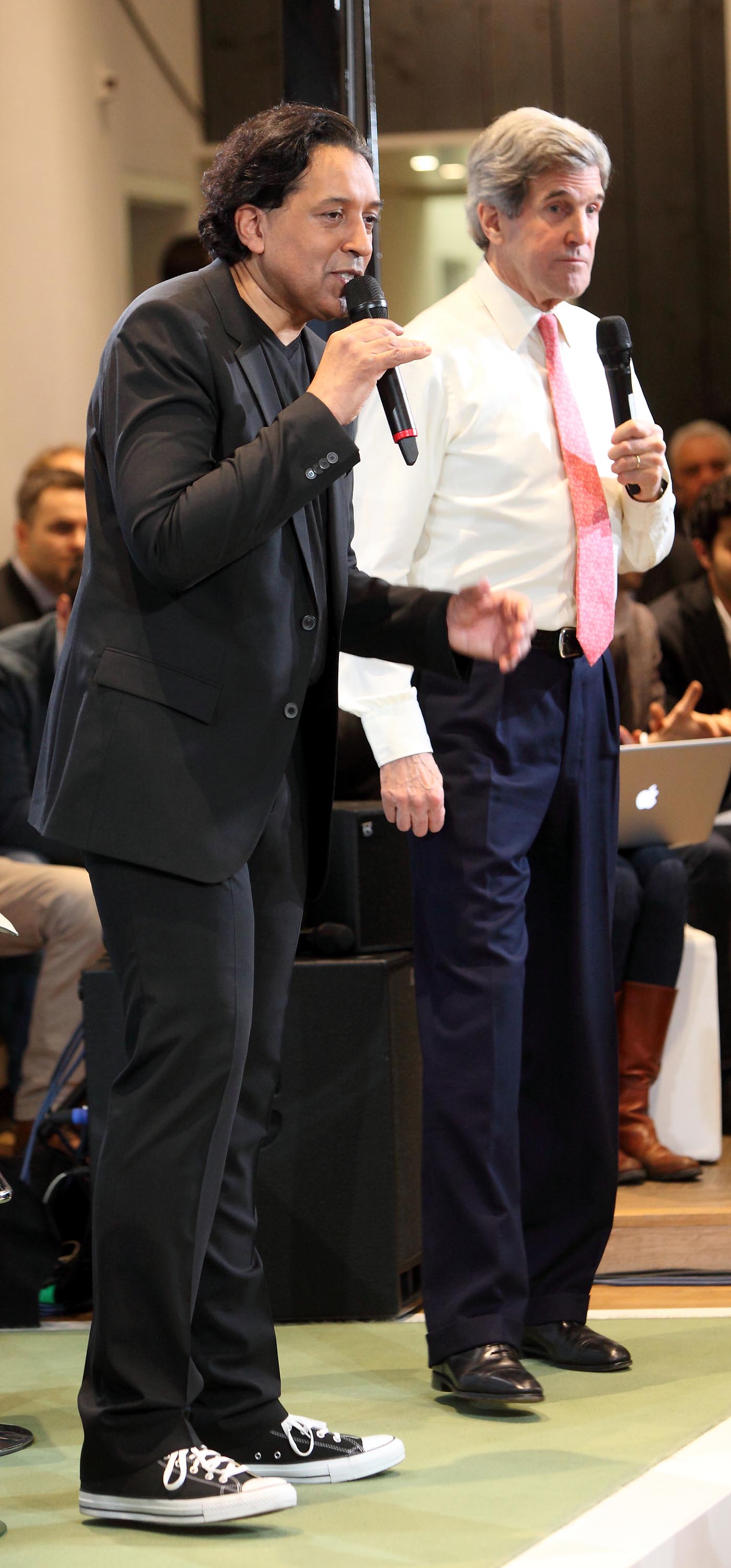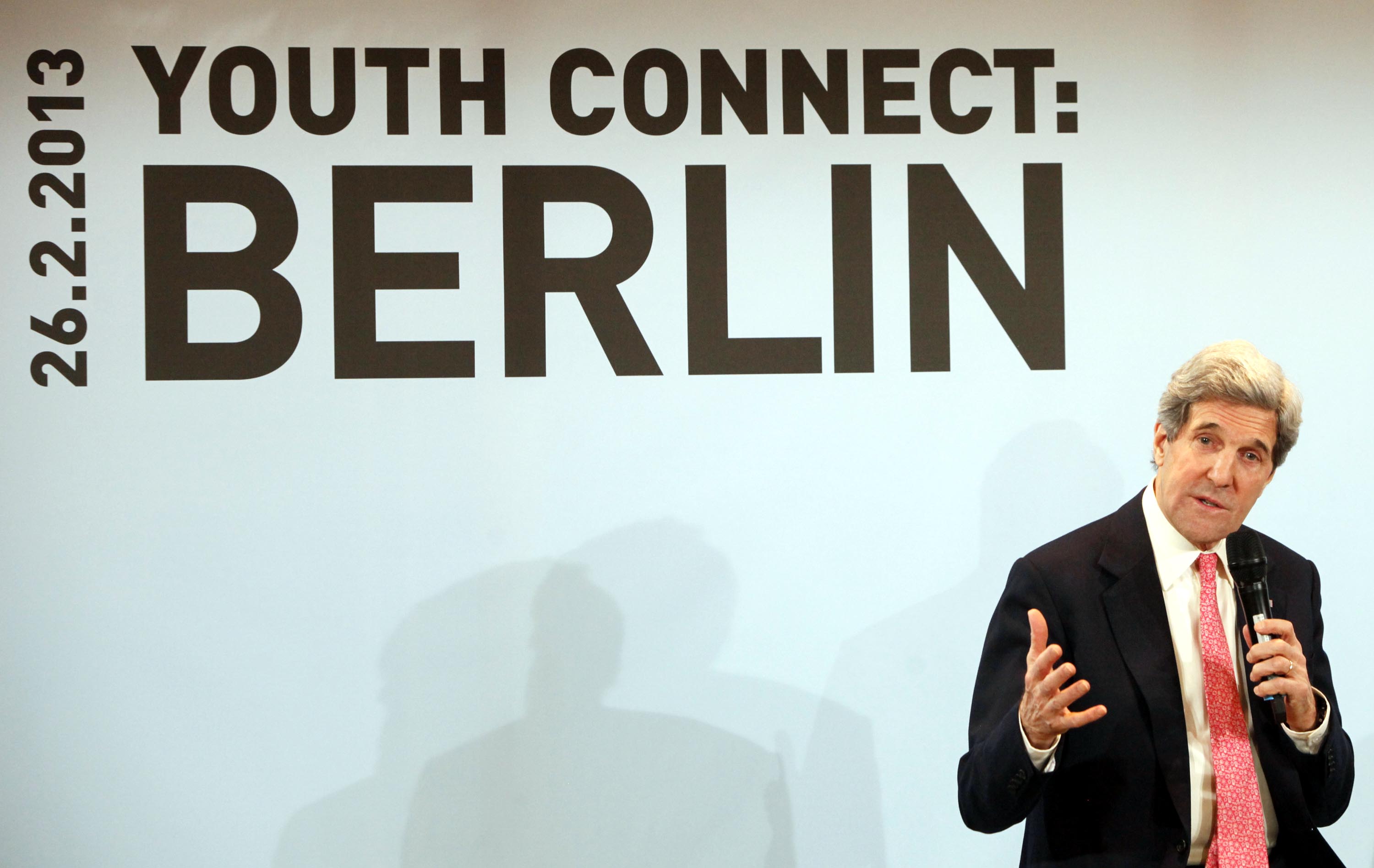 Der neue Chefdiplomat der USA, Außenminister John Kerry, besuchte auf seiner ersten Auslandsreise auch das alte Europa. In Berlin besuchte er die erste Youth Connect Veranstaltung, auf der er sich mit deutschen Jugendlichen austauschte und über globale Themen diskutierte. Im Rahmen der Youth Connect Serie tritt Kerry mit jungen Führungskräften und Innovatoren aus der ganzen Welt in Kontakt. Bei seinem Besuch in Berlin erzählte er, wie er in den 1950-er Jahren als Sohn eines Diplomaten immer mit dem Fahrrad durch das Brandenburger Tor und über den Checkpoint Charlie gefahren war. „Besonders verärgert war mein Vater, als ich ihm einmal beichten musste, dass die Grenzer mir meinen Pass abgenommen hatten, weil ich ständig am Checkpoint Charlie rauf- und runtergefahren bin.“ Der Einstieg in die Fragrunde mit den jungen Studierenden aus Berlin begann dann auch betont locker-flockig mit dem ersten Beitrag aus dem Publikum: “Thank you first of all to come here and to give us the chance to answer questions and second of all, I like your tie!” Kerry konterte blitzschnell: “You can get it on the internet, it’s inspired by my state, and the company is actually based in Connecticut”, und fügte dann hinzu, mit einem Blick auf Cherno Jobateys Schuhe: “And by the way, I like his shoes!” Jobatey trug wie immer schwarze Turnschuhe zum Anzug.