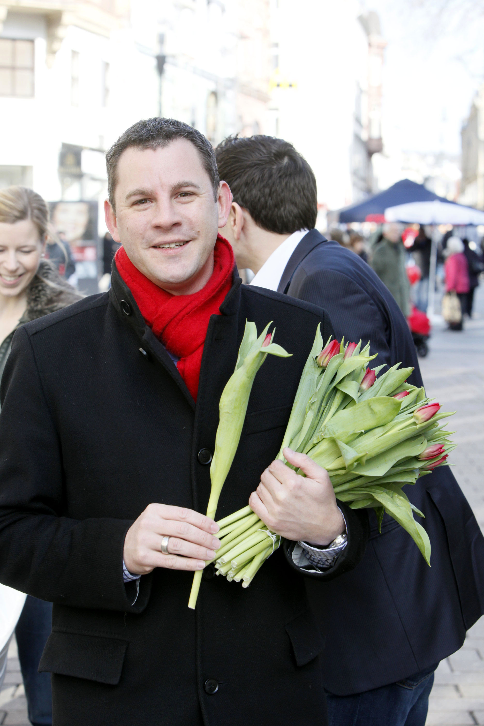 OB Wahlkampf für die SPD in Wiesbaden: Hannelore Kraft, NRW-Ministerpräsidentin, rockt als prominente Unterstützerin die Innenstadt von Wiesbaden. Da staunt der junge OB Kandidat nicht schlecht, wie Kraft auf die Menschen zugeht und gnadenlos volksnah Tulpen, Flyer und Gummibärchen unters Volk bringt. Ihm bleibt da nur mit lauter Stimme die Position 2. Aber Kraft ist sehr bemüht darum, ihn einzubinden. So versichert sie jedem, der es hören will oder nicht: „Zur Stichwahl müssen Sie den Sven Gerich hier hinter mir wählen. Der ist genauso wie ich. Fast. Aber der ist ehrlich und kümmert sich um Menschen.“ Und so kam es nicht selten vor, dass Hannelore Kraft bei schönstem Samstagssonnenschein laut nach hinten rief: „Schafft mal noch mehr Blumen und Gummibärchen ran, die brauchen hier mal alle was Schwung in Wiesbaden!“ Und das Ganze immer mit dem rotem Müntefering Schal.