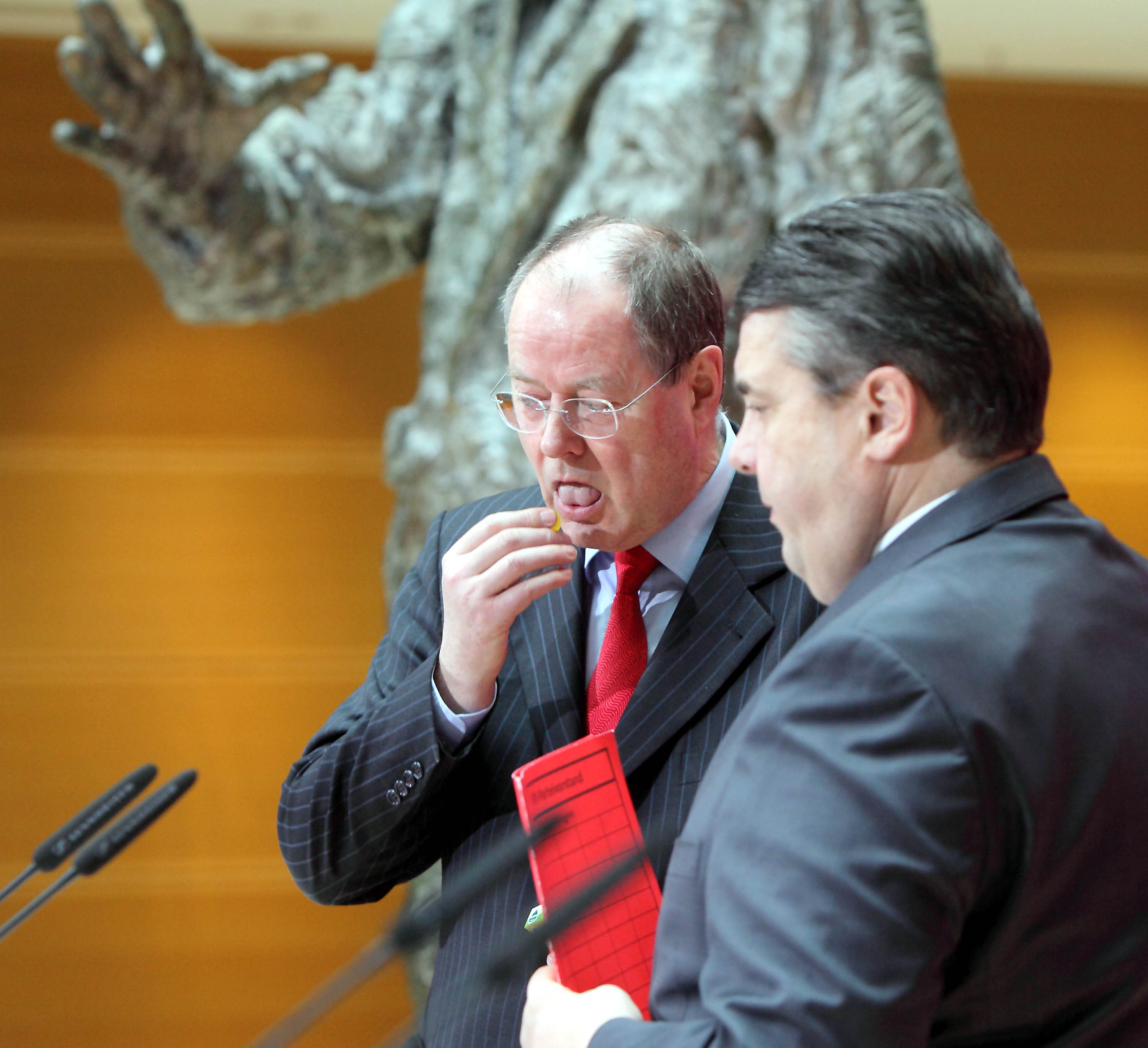 Peer Steinbrück klaut Bonbons! Unter diesem Titel hat ein kleiner 10-sekündiger Einspieler Einzug in YouTube und dann sogar auch in die „heute-Show“ gehalten. Der gesundheitlich leicht angeschlagene SPD-Kanzlerkandidat hatte während einer Pressekonferenz den Parteivorsitzenden Sigmar Gabriel um ein Hustenbonbon gebeten. Prompt hatte Gabriel ihm ein Päckchen Wick Hustenbonbons rüber gereicht. Steinbrück bediente sich, aber statt die Bonbons wieder ordnungsgemäß zurückzugeben, steckte er sie sie sich einfach in die eigene Hosentasche! Besorgte Mitbürger, die dies auf YouTube und im Fernsehen gesehen hatten, machen sich nun Sorgen: „Kann man diesem Politiker noch vertrauen? Hat der denn gar kein Mitgefühl?“ Allen fiel der traurige Gesichtsausdruck von Gabriel auf, als er seine Bonbons in der Tasche des anderen verschwinden sah.