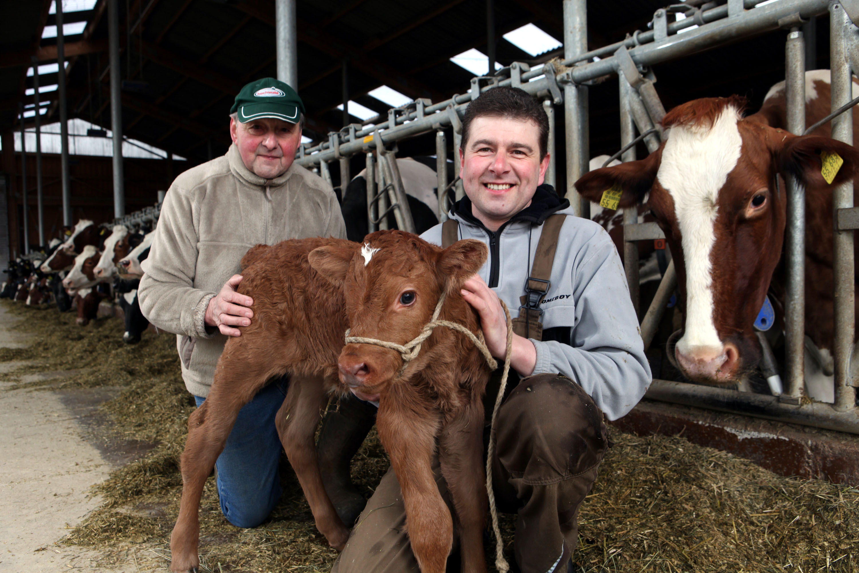 Gesunde Kühe aus der Vulkaneifel gebären gesunde Kälber. Das kleine braune Kalb ist gerade mal 4 Tage alt, aber es kann schon perfekt stehen, lecken, saugen und dem Menschen viel Freude bereiten. Nur einen Namen kann es noch nicht bekommen. Warum wird bloß einem so netten Lebewesen wie diesem Kalb die Namensgebung verwehrt? Bauer Rademacher: „Man muss immer erst mal abwarten, was daraus wird. Nach so ungefähr 3-4 Wochen weiß man, wie sich das Kalb so entwickelt, und dann bekommt es auch einen Namen.“