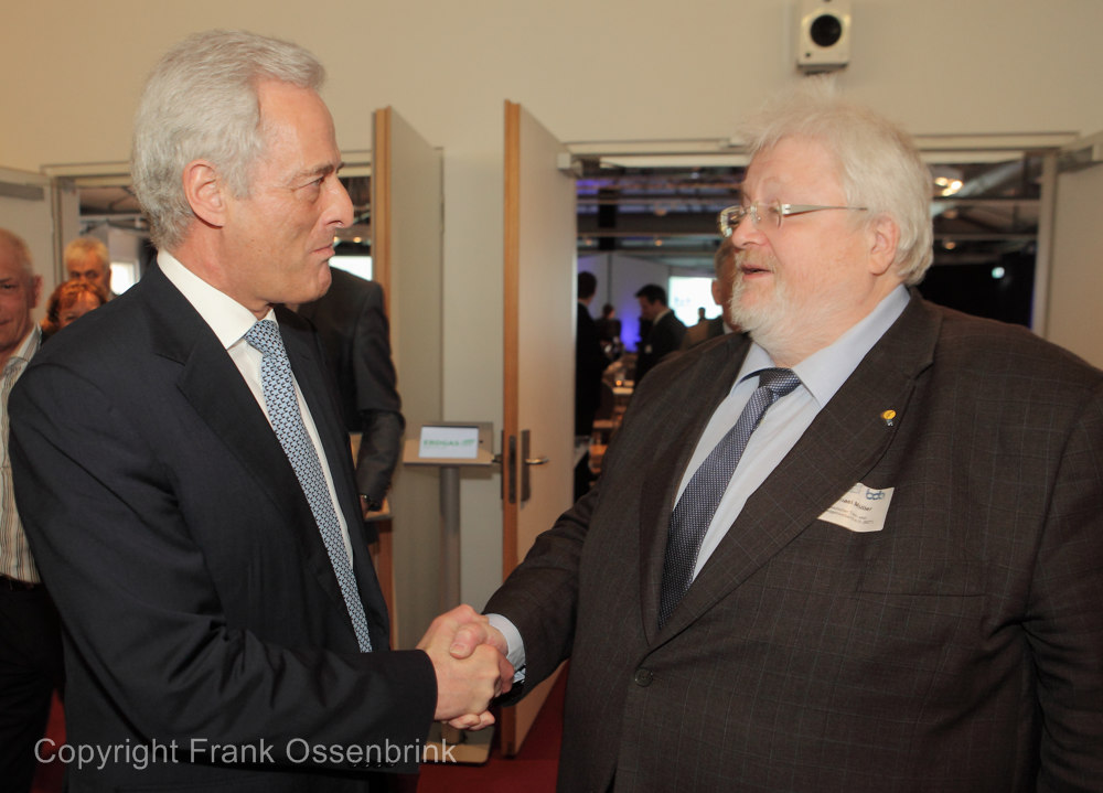 18.04.2013, Berlin, CSU Bundesverkehrsminister Peter Ramsauer im Gespräch mit Michael Müller, dem Präsident des Deutschen Taxi- und Mietwagenverbandes BZP, zu aktuellen Problematiken im Gewerbe. Ramsauer zeigte sich sehr aufgeschlossen und versiert beim Thema Fahrgast und Fahrersicherheit, hier besonders die Anschnallpflicht. Präsident Mueller war beeindruckt, mit welcher Offenheit sich Ramsauer sofort der Thematik näherte. Ramsauer: In erster Linie geht es doch um die Menschen. Ich will so wenig wie möglich regulieren. Aber eins soll doch klar sein, Qualität und Sicherheit für Fahrer und Fahrgast muss optimal gelöst sein. Wir sind doch schließlich in Deutschland und nicht irgendwo. Mueller konnte auch mit dem Minister noch weitere Themen intensiv erörtern, bei denen Ramsauer seine Unterstützung zusagte.