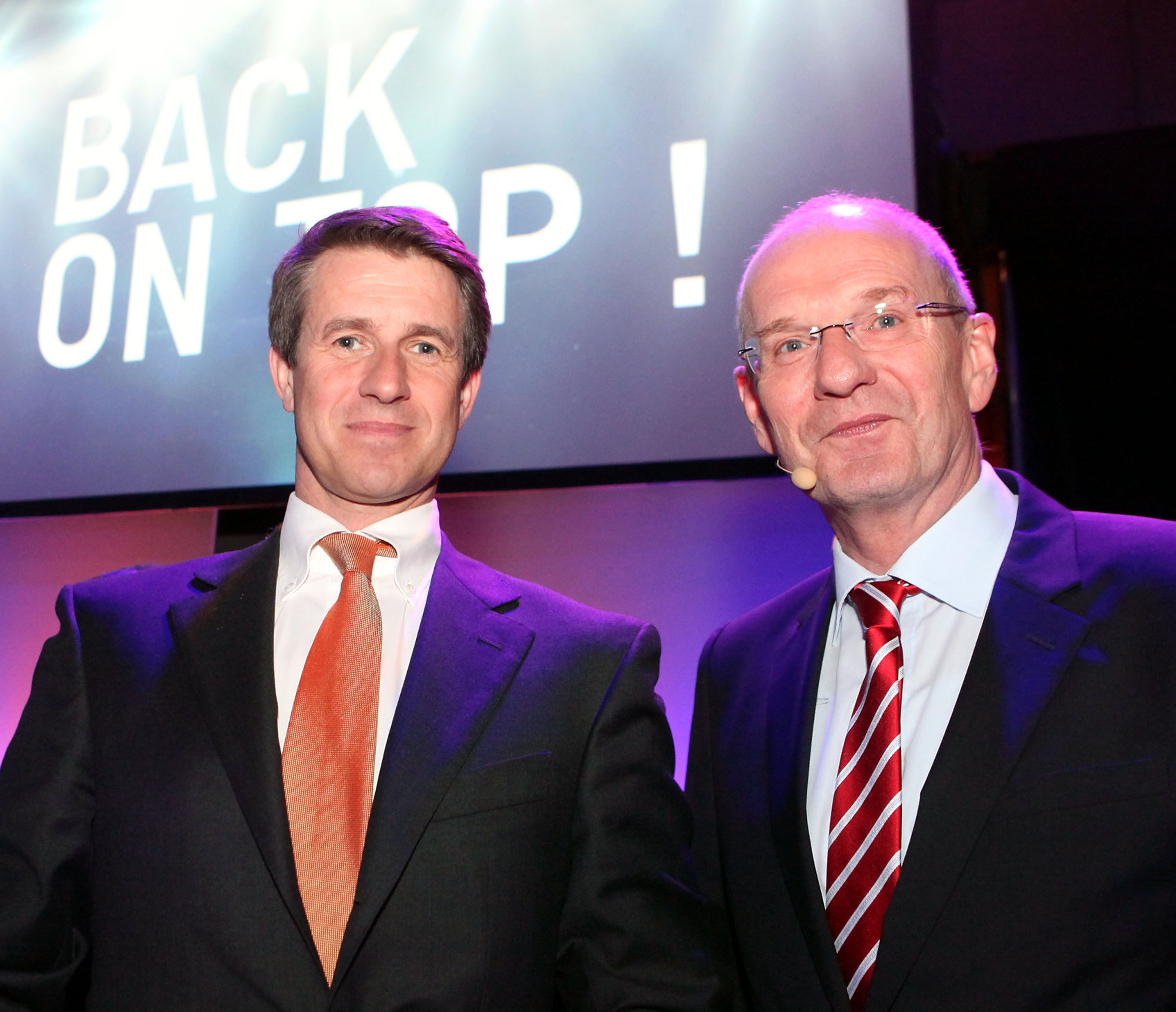 24.04.2013, Dresden, Sachsen, Der Pionier der Solarwirtschaft, die Firma Solarwatt, nimmt die Herausforderung der Krise an: Über 1.000 Gäste informierten sich im Dresdener Eventwerk über die Neuausrichtung der SOLARWATT GmbH, die mit einem völlig neuen Geschäftsmodell und innovativen Produkten in die Zukunft startet. „Wir glauben an die Zukunft der Solartechnik made in Germany“, so CEO Detlef Neuhaus. Mit Dr. Christine Theiss, Kickbox-Weltmeisterin, Bundesumweltminister Peter Altmaier mit Hans-Peter Villis, ehemaliger CEO des Energieversorgers EnBW und Ehefrau Rita. Das Grußwort sprach der Unternehmer und Hauptgesellschafter von SOLARWATT, Stefan Quandt.
