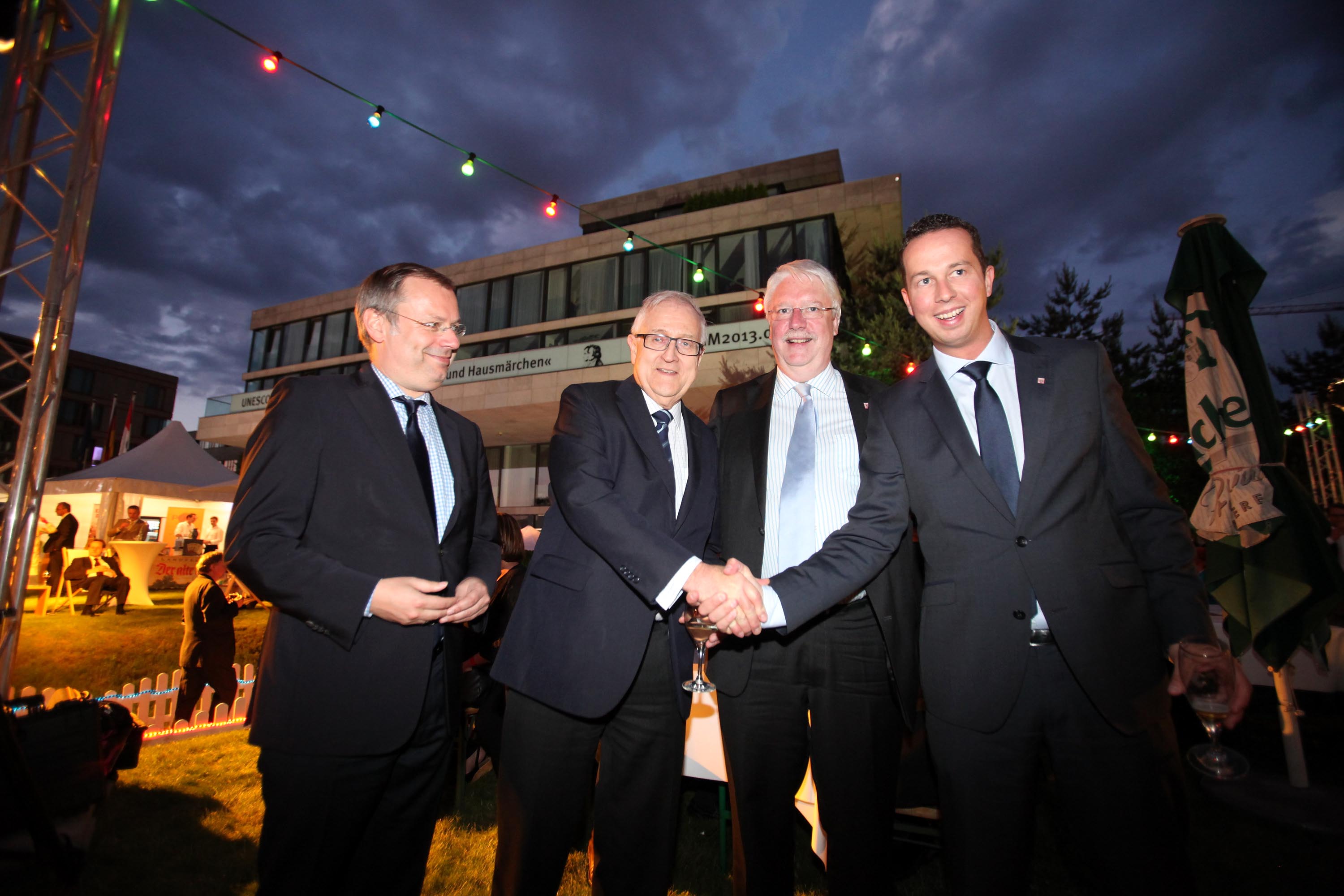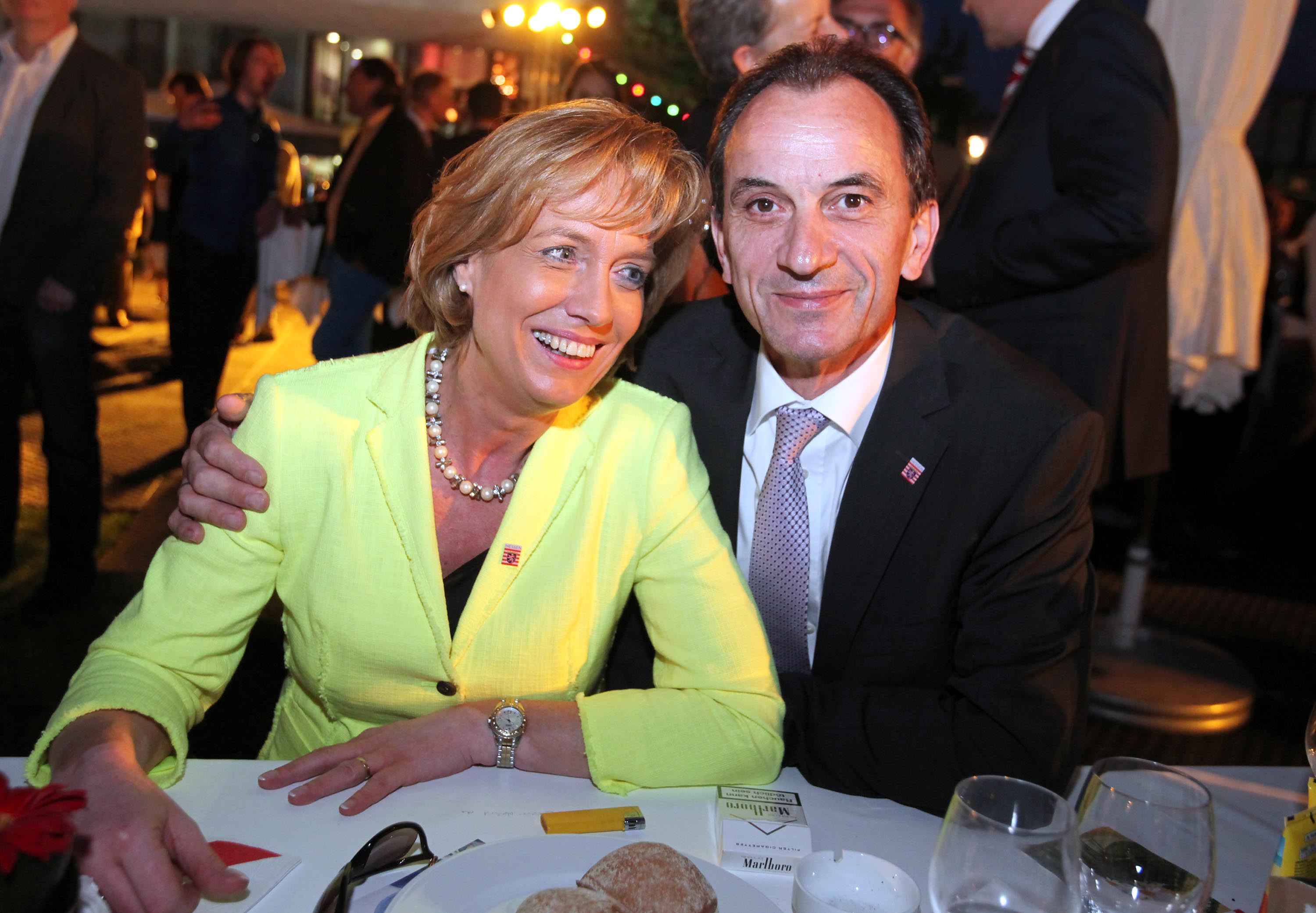 Landesvertretung Hessen Berlin, Hessenfest, Die Liberalen sprechen zu später Stunde mit Computern, golfen mit Leidenschaft und feiern gerne. Mit Rainer Brüderle, Jörg Uwe Hahn, Staatssekretär Steffen Saebisch, dem neuen Wirtschaftsminister Florian Rentsch und seinem Amtsvorgänger Dieter Posch. CDU Minister Michael Boddenberg genießt den Abend mit seiner Frau Sylvia.