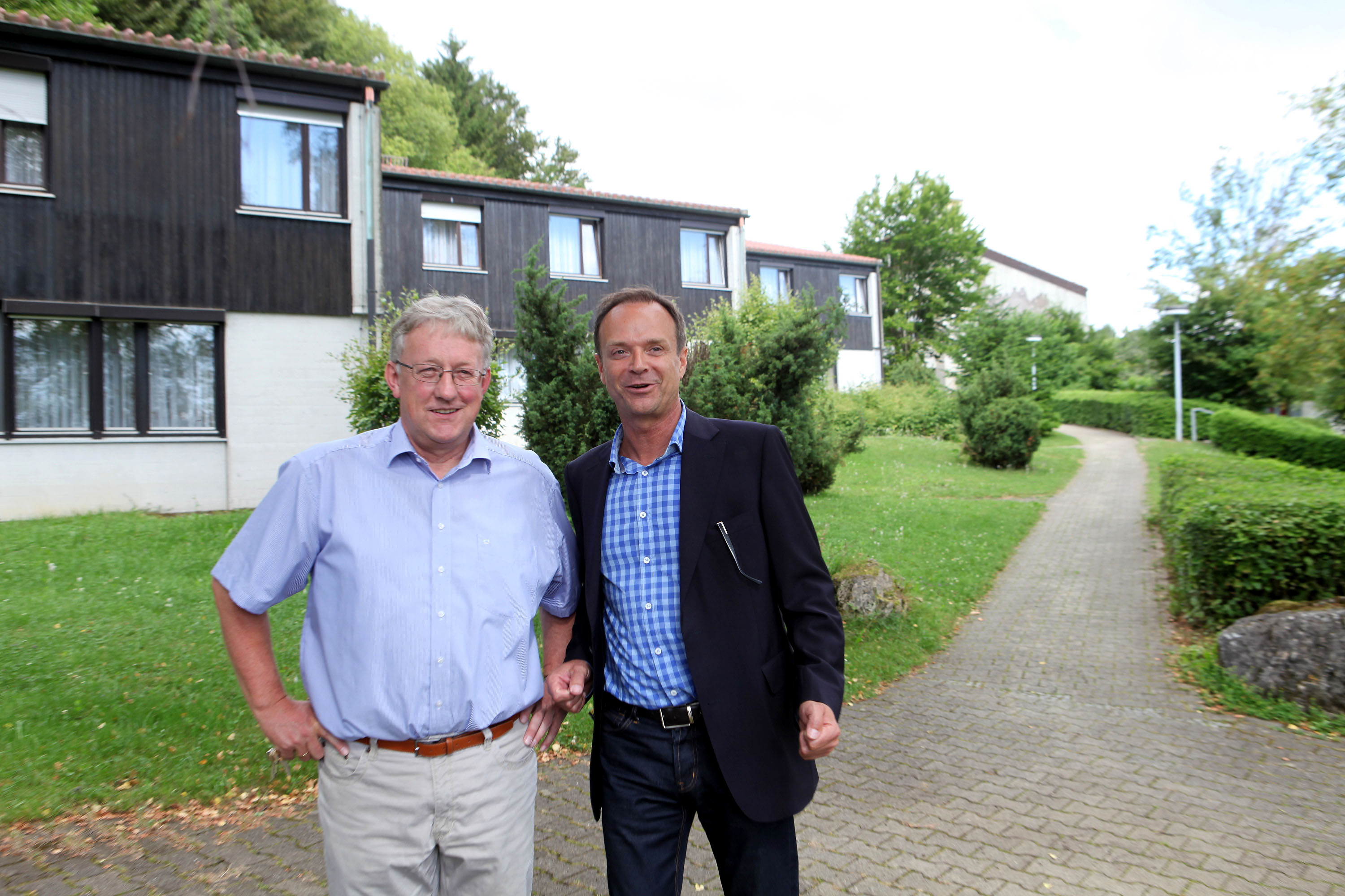 31.07.2013, Gomadingen, Baden-Württemberg, ehemaliger Ferienpark der evangelischen Kirchengemeinde, die grüne MdB Beate Mueller-Gemmeke besucht das alte Objekt der Kirchengemeinde Stuttgart, um sich über den Stand der Investitionen zu informieren. Die Kirche hatte das Objekt abgeben müssen, bei einem Schuldenstand von 300.000 EURO pro Jahr. Der neue Investor hat mit der Gemeinde und den Mitarbeitern ein neues Konzept unter Aufrechterhaltung des Hallenbades und anderer Einrichtungen mit einer Totalsanierung im Plan.