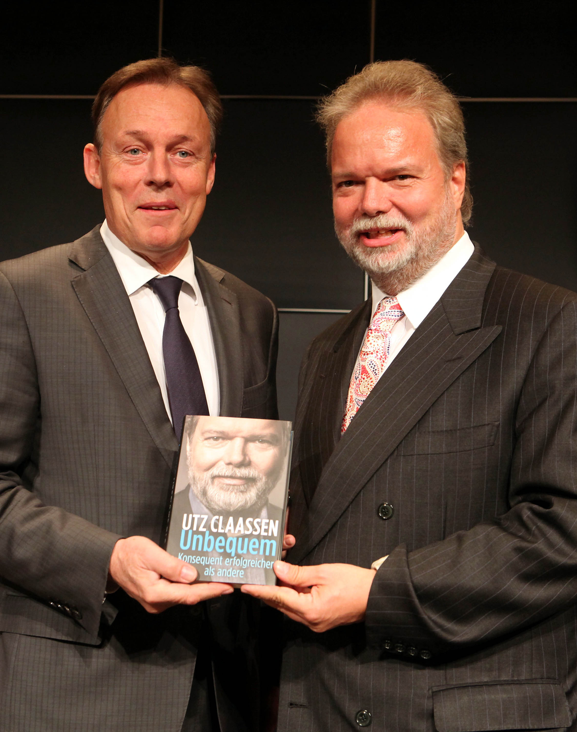 29.10.2013, Berlin, Buchvorstellung, Utz Claassen, ehemaliger EnBW Manager und Vorstandsvorsitzender, bei seiner Buchvorstellung mit Laudator Thomas Oppermann SPD. Er will meistens alles, und dazu jetzt auch noch eine Partei gründen. Die politische Laufbahn von Oppermann verfolgt der erfolgsverwöhnte ex Manager und VW Lieblingscontroller schon lange. Das neue Buch soll nur ein kurzer Meilenstein sein, denn er will demnächst in die Politik einsteigen und richtig mitmischen. Und zwar im Vordergrund!