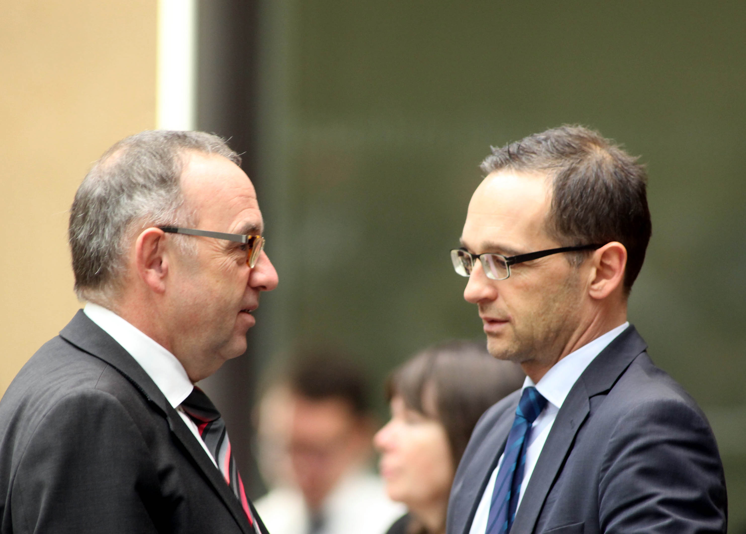 08.11.2013, Berlin, Bundesrat, Bundesratssitzung mit dem beiden Grünen, Ministerpräsident Winfried Kretschmann und Verkehrsminister Winnie Hermann aus Baden-Württemberg; dem Langen Kerl aus Brandenburg, Dietmar Woidke; Horst Seehofer, Bayern, mit seiner Vertrauten Christine Haderthauer; Stanislaw Tillich aus Sachsen mit Smartphone, Jürgen Gnauck aus Trier, dem alten und neuen Minister für Bundes- und Europaangelegenheiten und Chef der Staatskanzlei des Landes Thüringen; Malu Dreyer, auch aus Trier, und Ministerpräsidentin NRW Hannelore Kraft; Annegret Kramp-Karrenbauer und Heiko Maas, Saarland; Torsten Albig und Energiewendeminister Robert Habeck aus Schleswig-Holstein; Norbert Walter-Borjans und Heiko Maas im Gespräch zum Thema Finanzen. Albig sprach zum Thema Kommunen und deren finanzielle Not: „Solange Wolfgang Schäuble im Bundesfinanzministerium sitzt und die Kommunen so geißelt, werden wir keine Entwicklung an den Konversionsstandorten haben!“