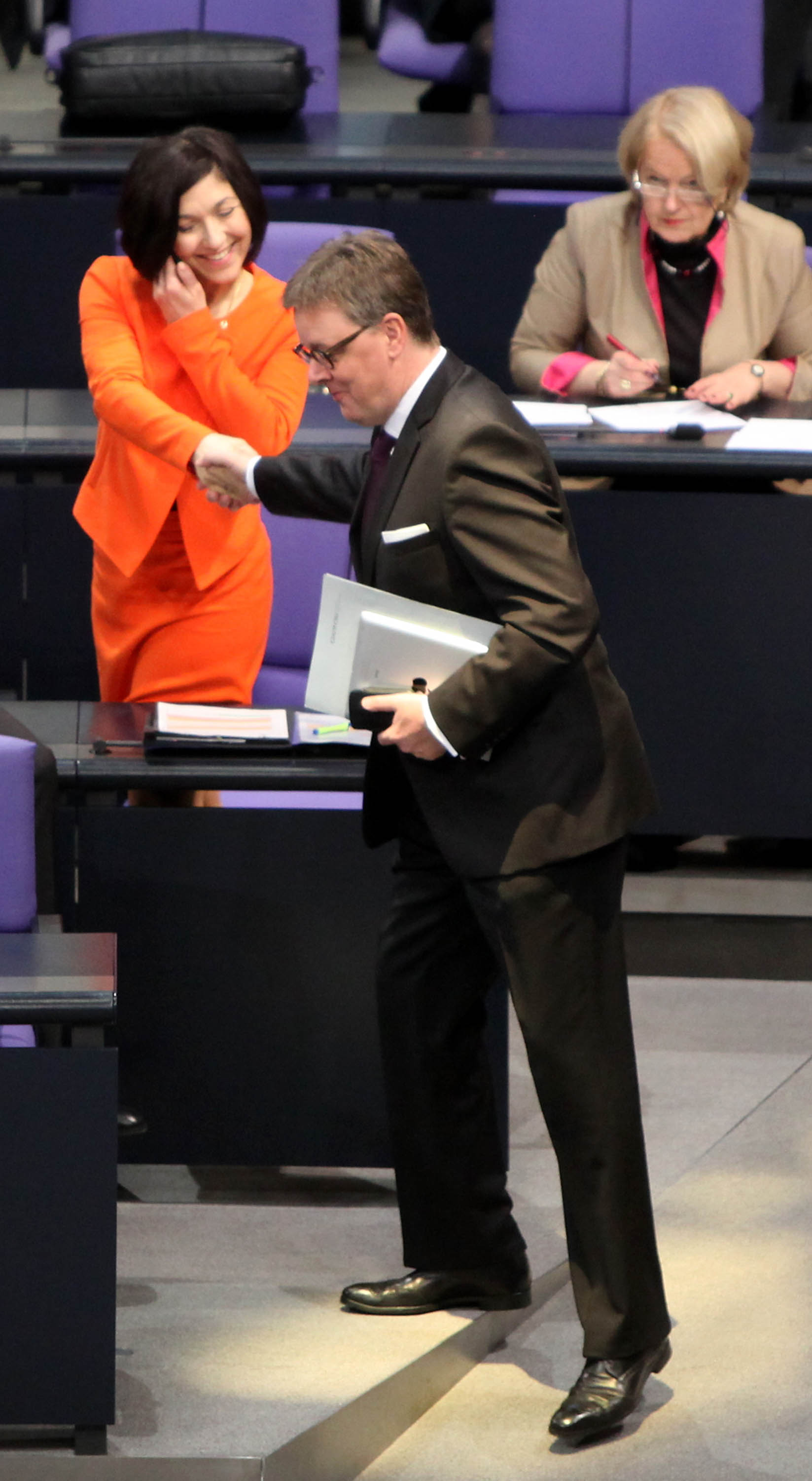 Thomas Oppermann, Peer Steinbrück, Sigmar Gabriel, Katrin Göring-Eckart und Anton Hofreiter – alle gratulieren brav, und von Horst Seehofer gibts ein Küsschen.