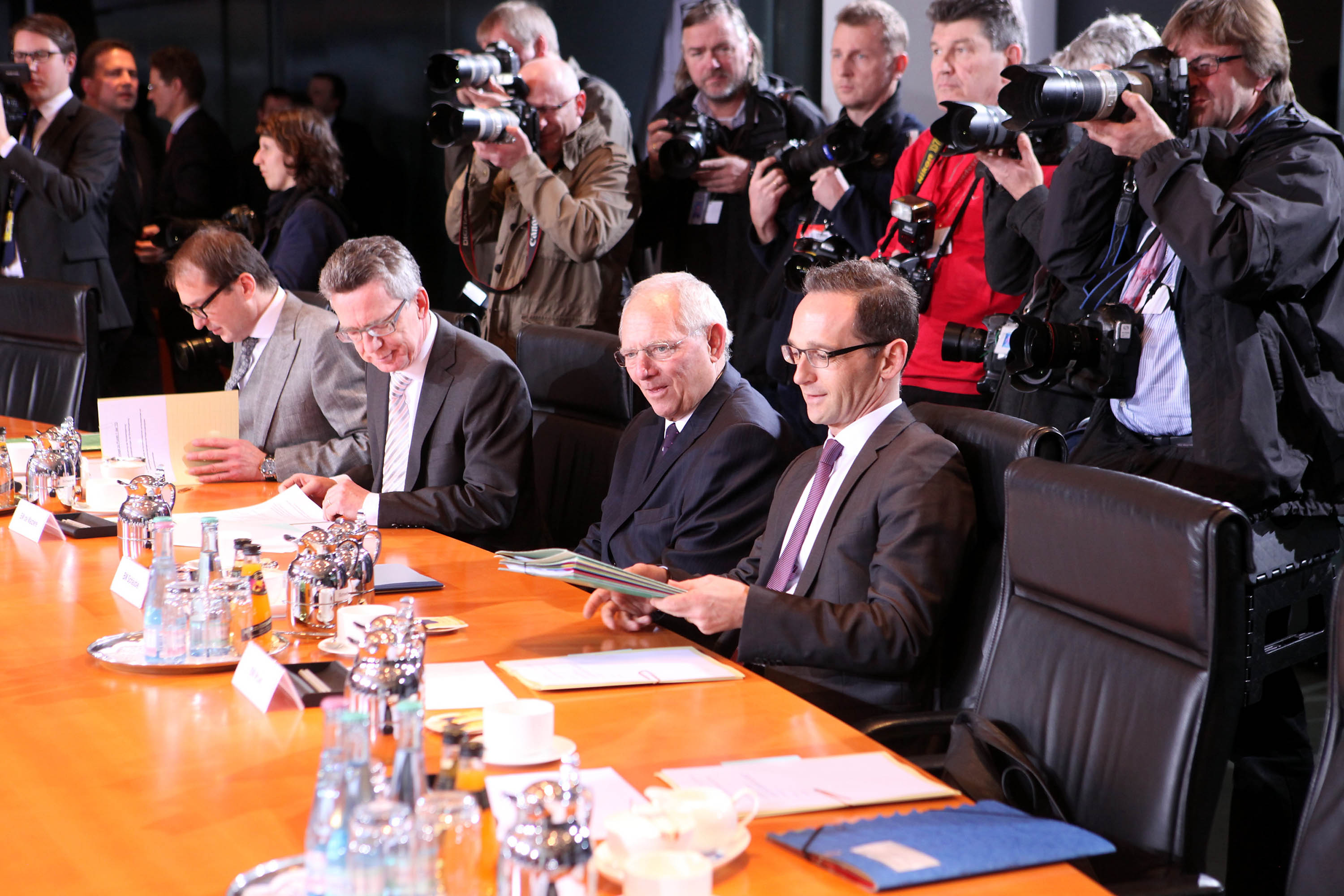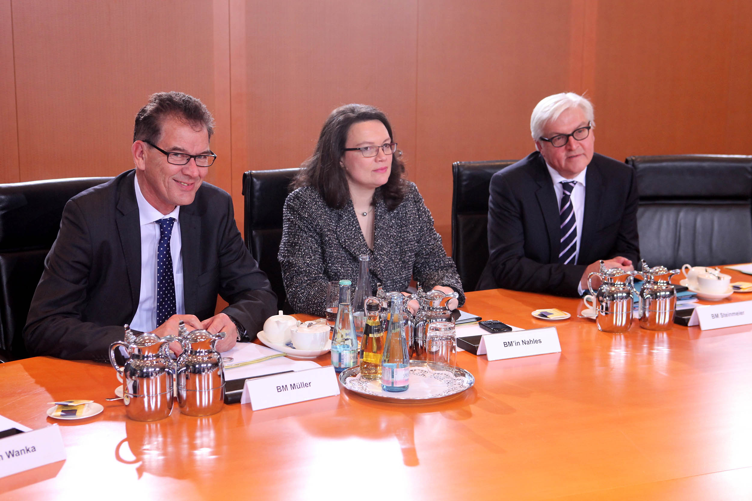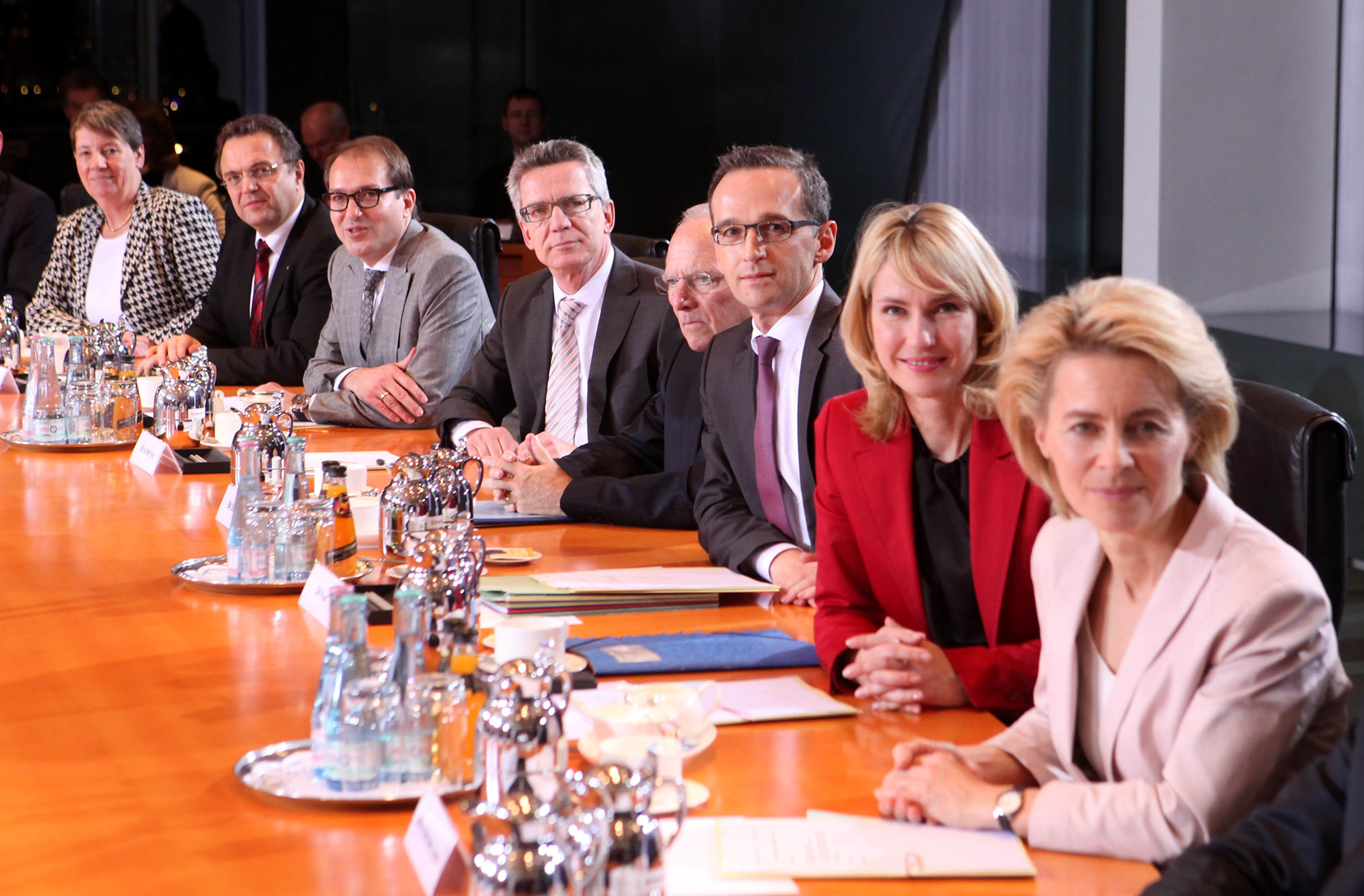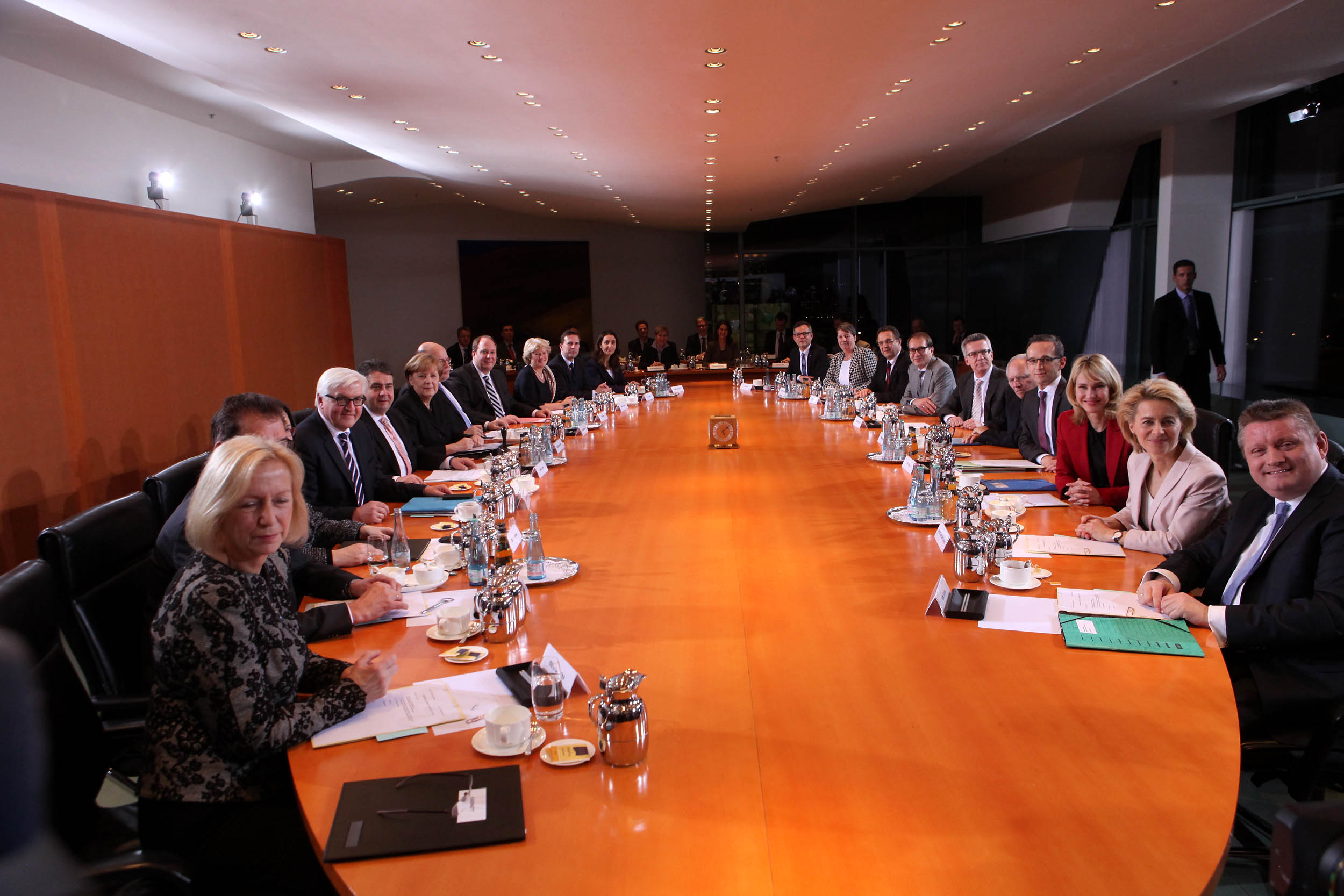 1. Sitzung mit Ursula von der Leyen, Sigmar Gabriel, Frank Walter Steinmeier, Gerd Mueller, Manuela Schwesig, Hermann Groehe, Heiko Maas, Wolfgang Schäuble, Hans Peter Friedrich, Thomas de Maiziere, Barbara Hendricks, Peter Altmaier, Johanna Wanka, Andrea Nahles, Alexander Dobrindt.