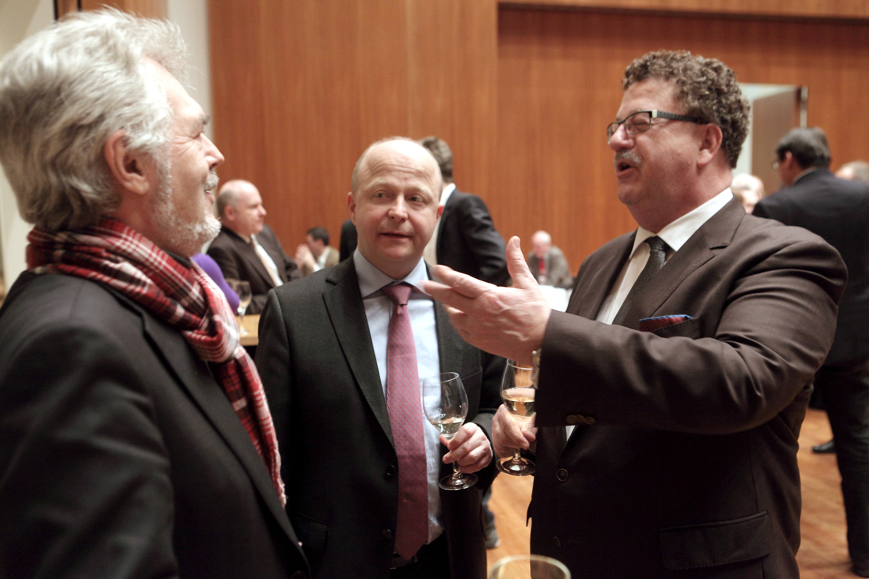 Neujahrsempfang von SPD Europaminister Peter Friedrich mit Stefan Kohler, DENA Energieagentur, MdEP FDP Michael Theurer, MdB CDU Thomas Bareiss, Staatssekretär im BMZ Hans-Joachim Fuchtel, den Journalisten Günther Voss, dpa-Urgestein und auch im Familienbetrieb mit einer anerkannten gestandenen Journalistin verheiratet, Peter Thelen, ex Handelsblatt, Malte Georg Zeeck, NDR Bremen, Grüne Kerstin Andreae und ihr Ehemann Volker Ratzmann.