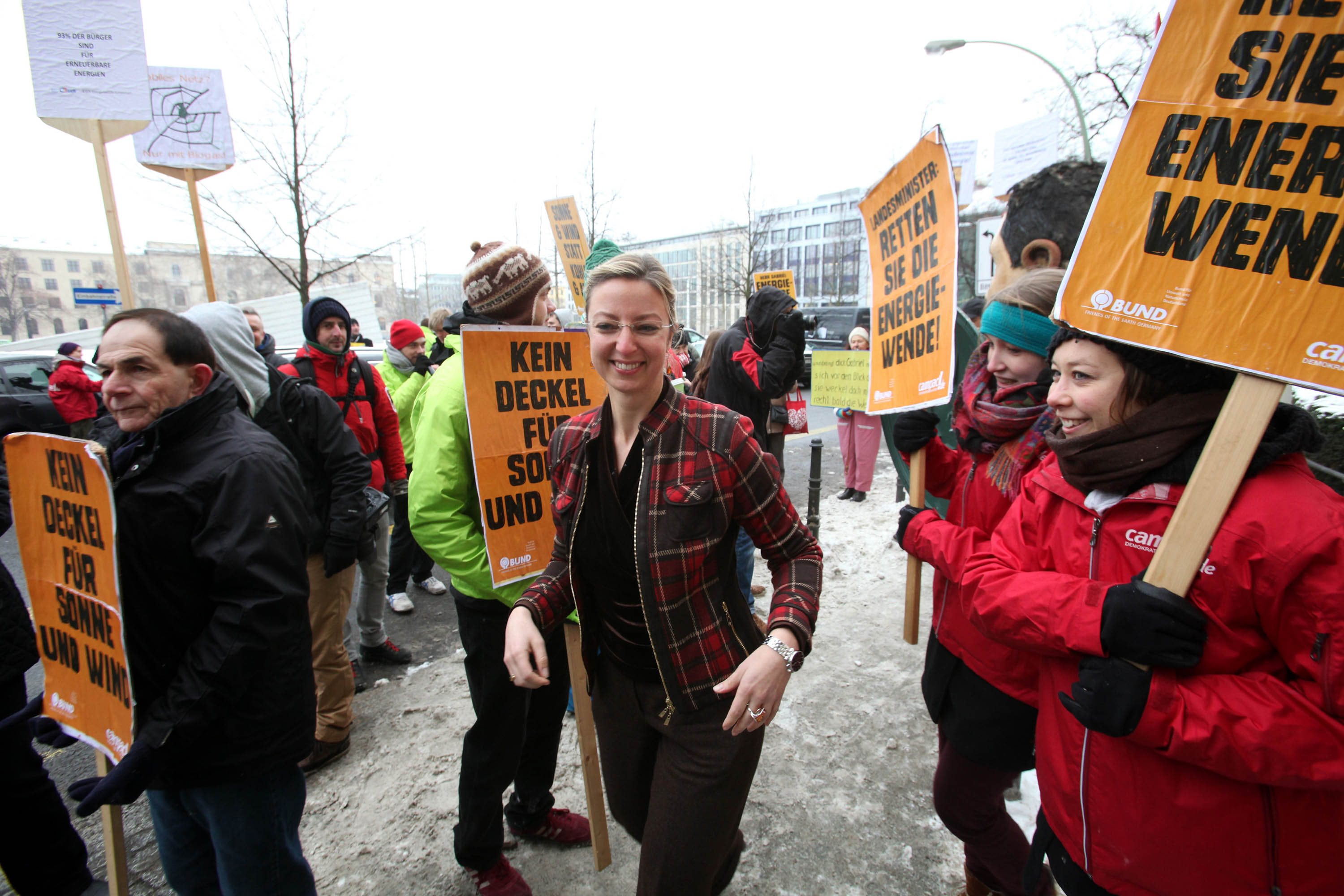 30.01.2014, Berlin, Bundeswirtschaftsministerium, Demonstration gegen die Deckelung der Förderbeiträge bei regenerativen Energiequellen, organisiert durch die Firma Compact (Event- und Demo Management) für den Bundesverband regenerativer Energien gegen Bundeswirtschaftsminister Sigmar Gabriel.