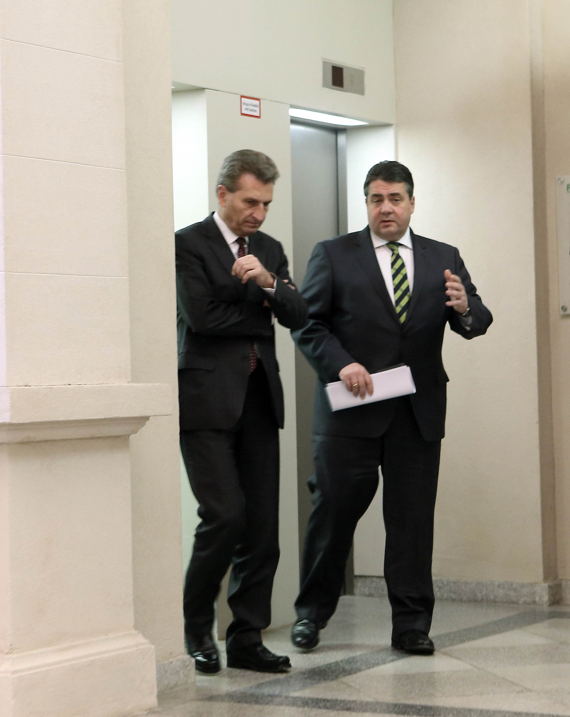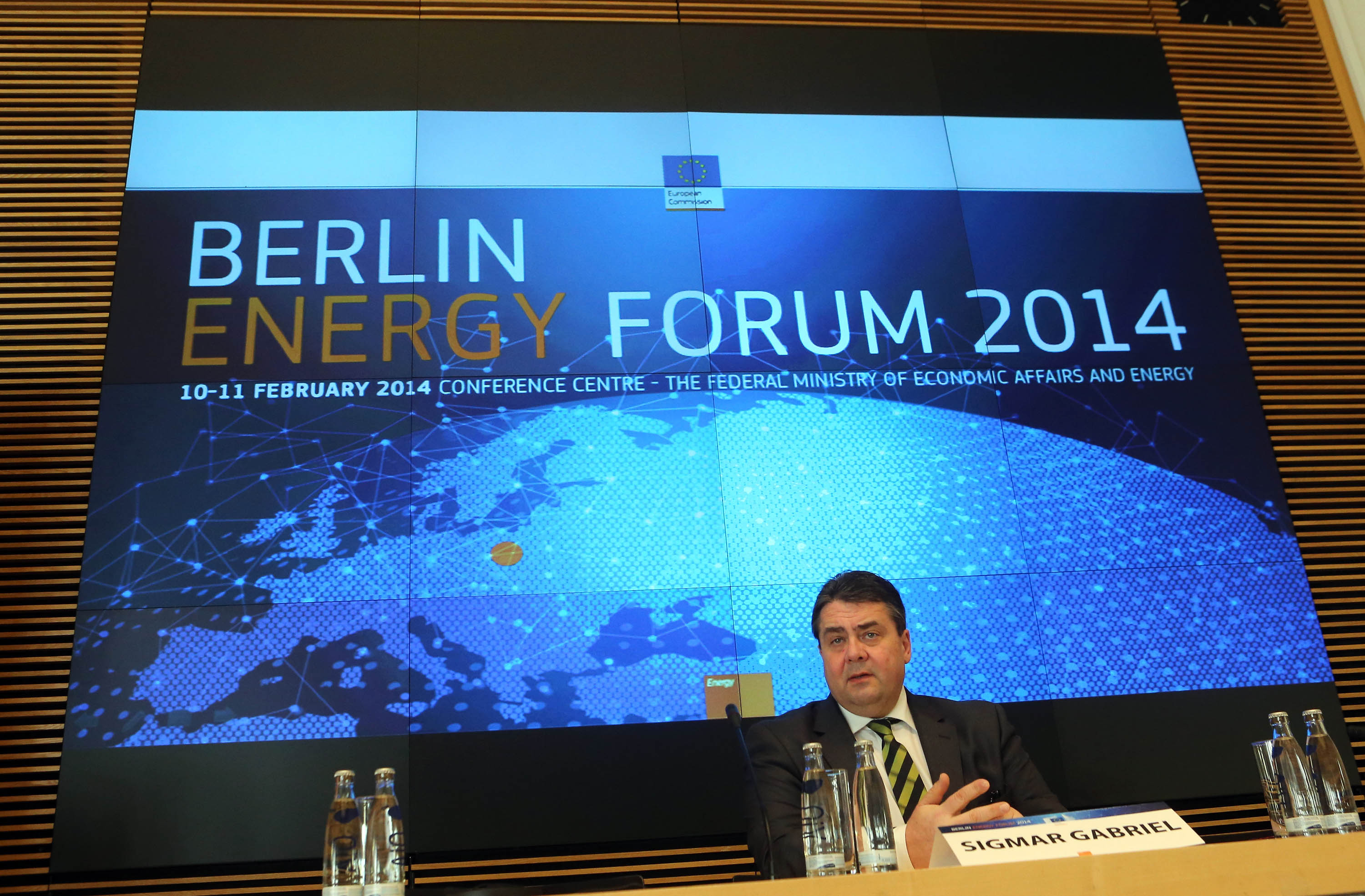 10.02.2014, Berlin, Berlin Energy Forum 2014 im Bundeswirtschaftsministerium mit dem ehemaligen Staatssekretär Caio Koch-Weser, Bundeswirtschaftsminister Sigmar Gabriel, EU-Energiekommissar Guenther-H. Oettinger, Dominique Ristori.