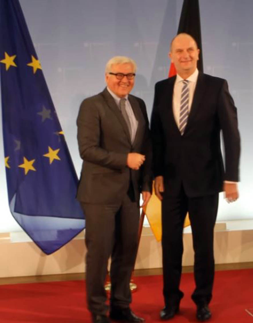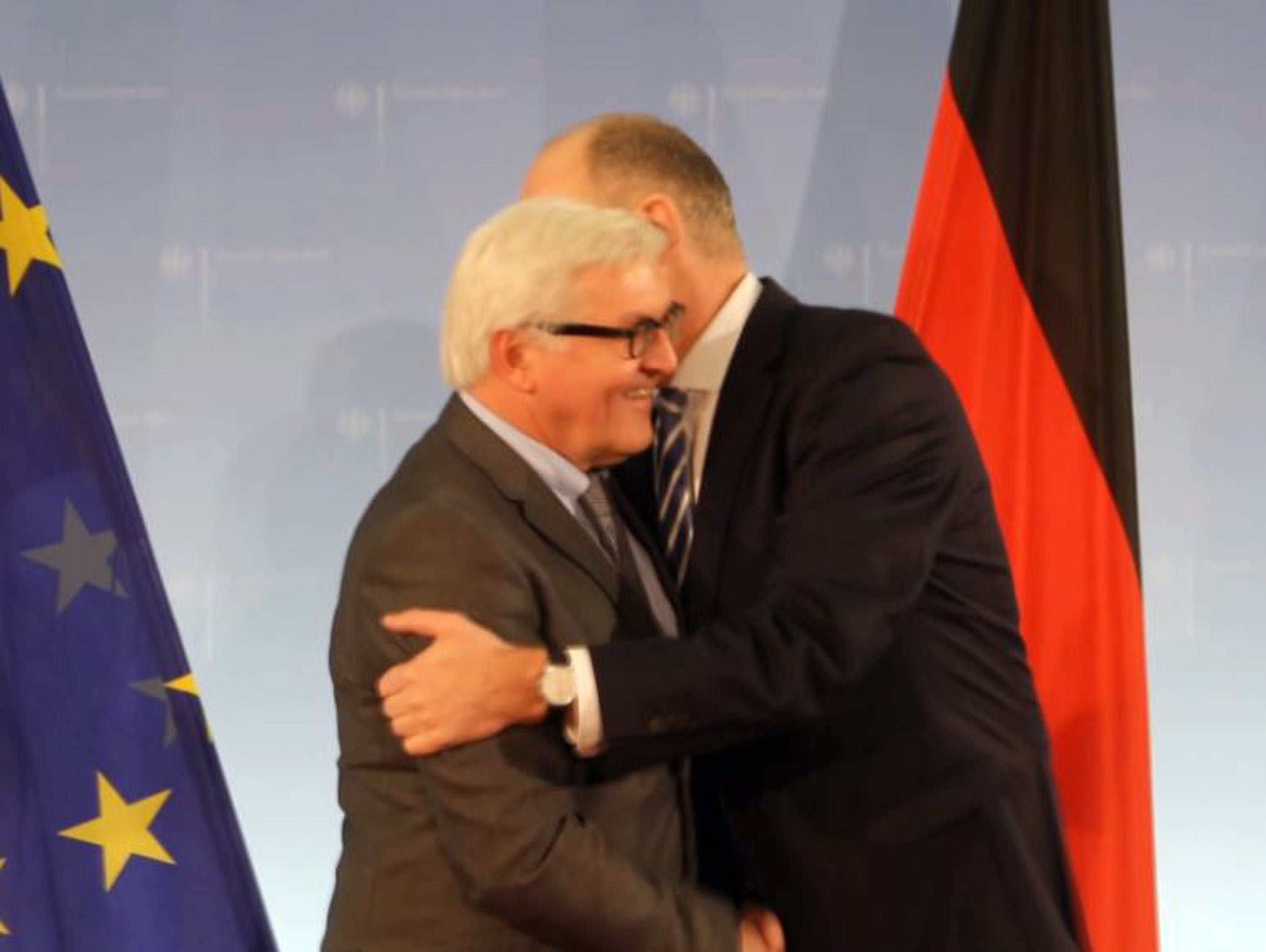 Das Auswärtige Amt ist stets darum bemüht, eine blitzsaubere Öffentlichkeitsarbeit zu leisten. Dafür stehen ihnen auch genügend Mitarbeiter zur Verfügung. Aber manchmal schreibt das Leben einfach andere Geschichten. So hat es dann aus einem eigentlich reinen Papiertermin einen Bildtermin gemacht beim Empfang der Beauftragten und Koordinatoren. Normalerweise ein Termin, den eher die Betroffenen mit ihrem eigenen Handy dokumentieren. Der Koordinator für die deutsch-polnische Freundschaftsarbeit Dietmar Woidke sah diesen Termin aber etwas anders: noch nicht lange im Amt, trat der sehr hochgewachsene Ministerpräsident und Genosse aus Brandenburg, auf Genosse Außenminister zu, und anstatt einen Blick in die Kameras zu werfen, machte er dies mit einer innigen Umarmung des erheblich kleineren Frank-Walter Steinmeier, was bei allen Beteiligten schallendes Gelächter auslöste. Steinmeier selber, sichtlich überrascht, statt einem einfachen Handshake eine Umarmung à la Henning Scherf zu bekommen, wurde aber aus dem Hintergrund sofort in die Realität zurückgeholt, indem der scheidende für Menschenrechte und humanitäre Hilfe, der liberale ehemalige Bundestagsabgeordnete Markus Löning, aus dem Hintergrund in den Raum rief: „O schaut, wie schön in diesem Hause! Ein Stabwechsel mit sozialistischem Bruderkuss!“ Dabei bezog sich Löning auf die Vorverwendung des Hauses, das jahrzehntelang den Volkskammerabgeordneten in der DDR als Bürogebäude diente. Sichtlich amüsiert zeigte sich auch der Bundesaußenminister und hatte sofort die Assoziation im Kopf, bekam aber jetzt wieder keine Gelegenheit, selber Wortführer der Zeremonie zu werden, weil der Genosse Woidke ja auch schließlich im Wahlkampf steckt und schnell noch einen draufsetzte und sofort die Hand von Steinmeier ergriff und sagte: „Komm, Frank, und jetzt noch schnell ein Handshake, das muss drin sein!“ Anwesend bei dem Termin waren lediglich ein Hauskamerateam und zwei Fremdfotografen.