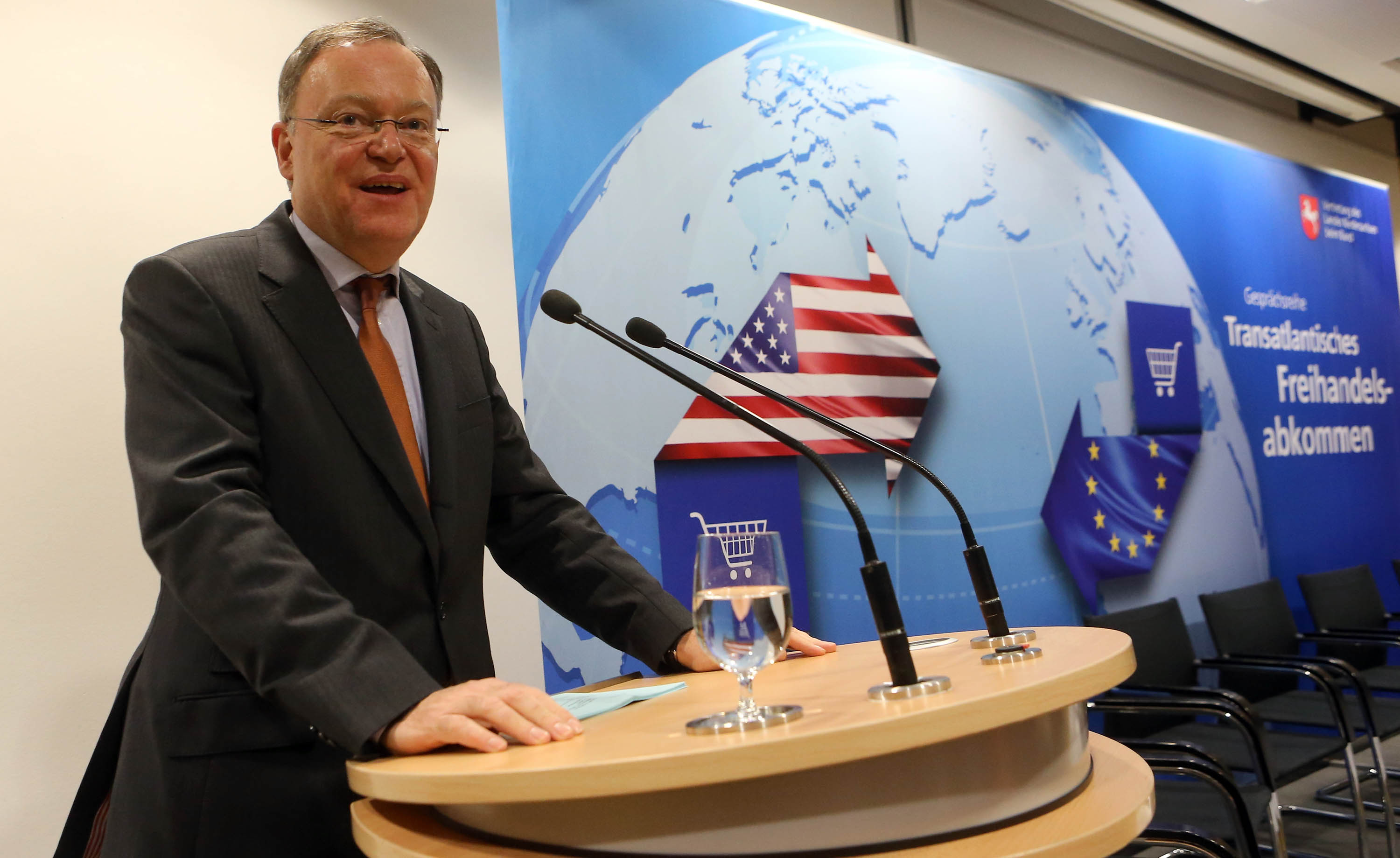 20.02.2014, Berlin, „Transatlantisches Freihandelsabkommen“, Landesvertretung LV Niedersachsen beim Bund, Podiumsveranstaltung, mit Staatssekretär Michael Rüter, Bevollmächtigter des Landes Niedersachsen beim Bund, Stephan Weil, Niedersächsischer Ministerpräsident, Werner Hilse, Präsident des Niedersächsischen Landvolkverbandes, Birgit Hone, Staatssekretärin in der Niedersächsischen Staatskanzlei, Harald Klimenta, attac, Dr. Michael Kühn, Bevollmächtigter des ARD-Vorsitzes, Hartmut Meine, IG-Metall-Bevollmächtigter Niedersachsen und Sachsen-Anhalt, Dr. Thomas Steg, Konzernbevollmächtigter Volkswagen, Ute Welty, freie Journalistin, Gerd Andres, Staatssekretär a. D.