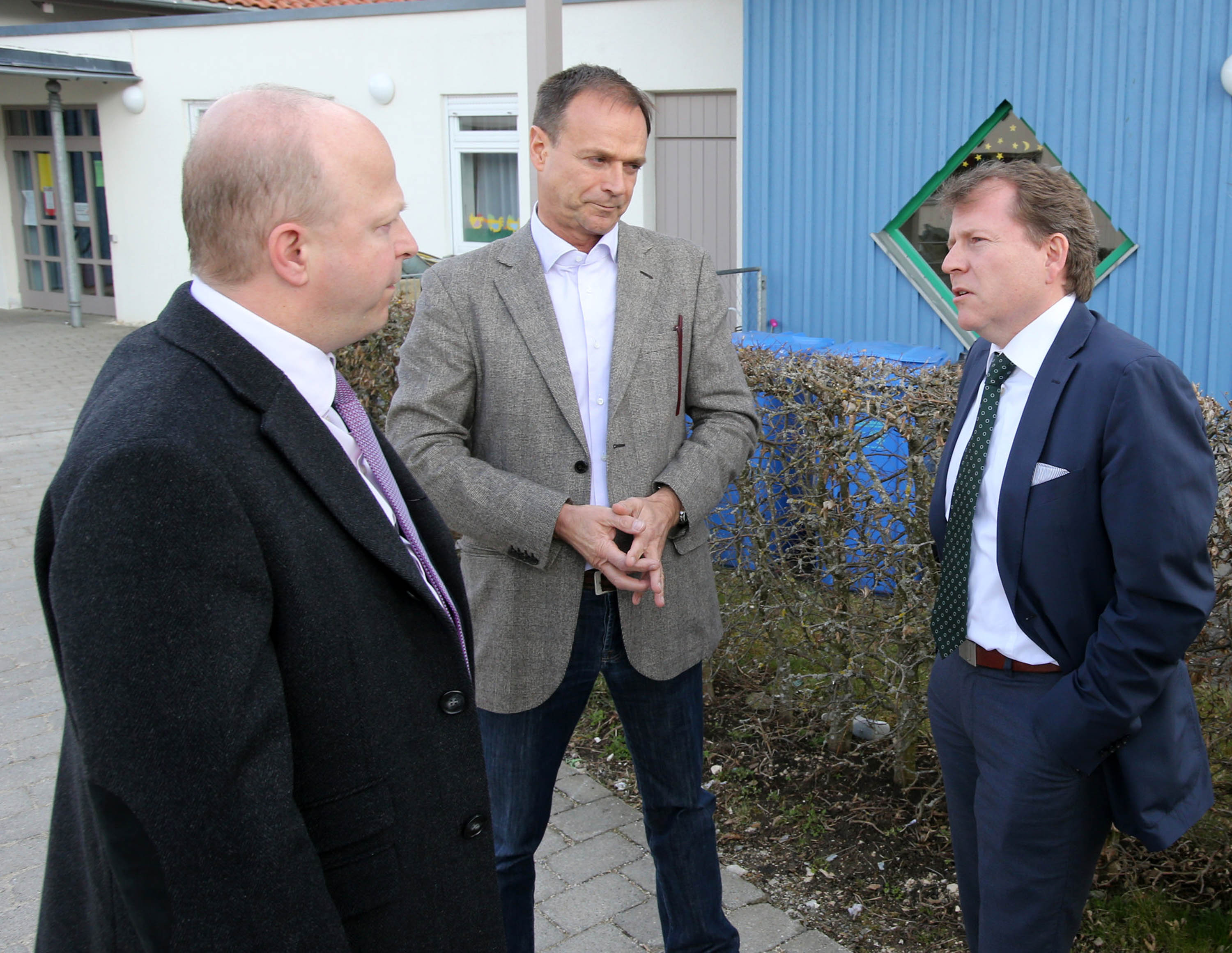 Der gebürtige Schwabe Wolfram Wäscher konnte aber auch im Gespräch mit den Bürgermeistern den beiden ein breites Grinsen entlocken mit der Tatsache, dass der Quadratmeterpreis für diesen neu geschaffenen Kindergarten, in dem die Kinder fast doppelt so viel Spielfläche haben wie in anderen sanierten Kindergärten, 30% unter dem Kaufpreis liegt, wenn andere Anbieter hier ihr Angebot abgegeben haben.