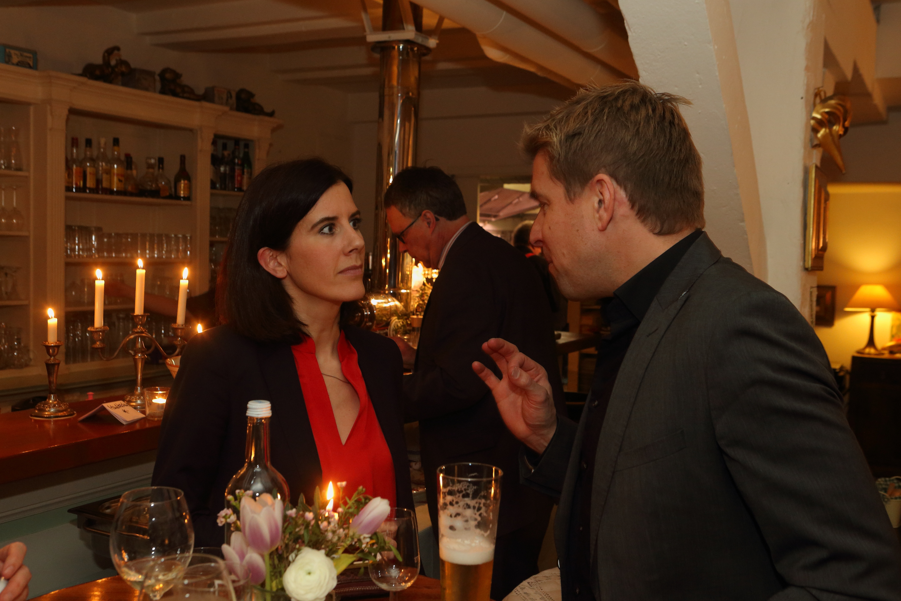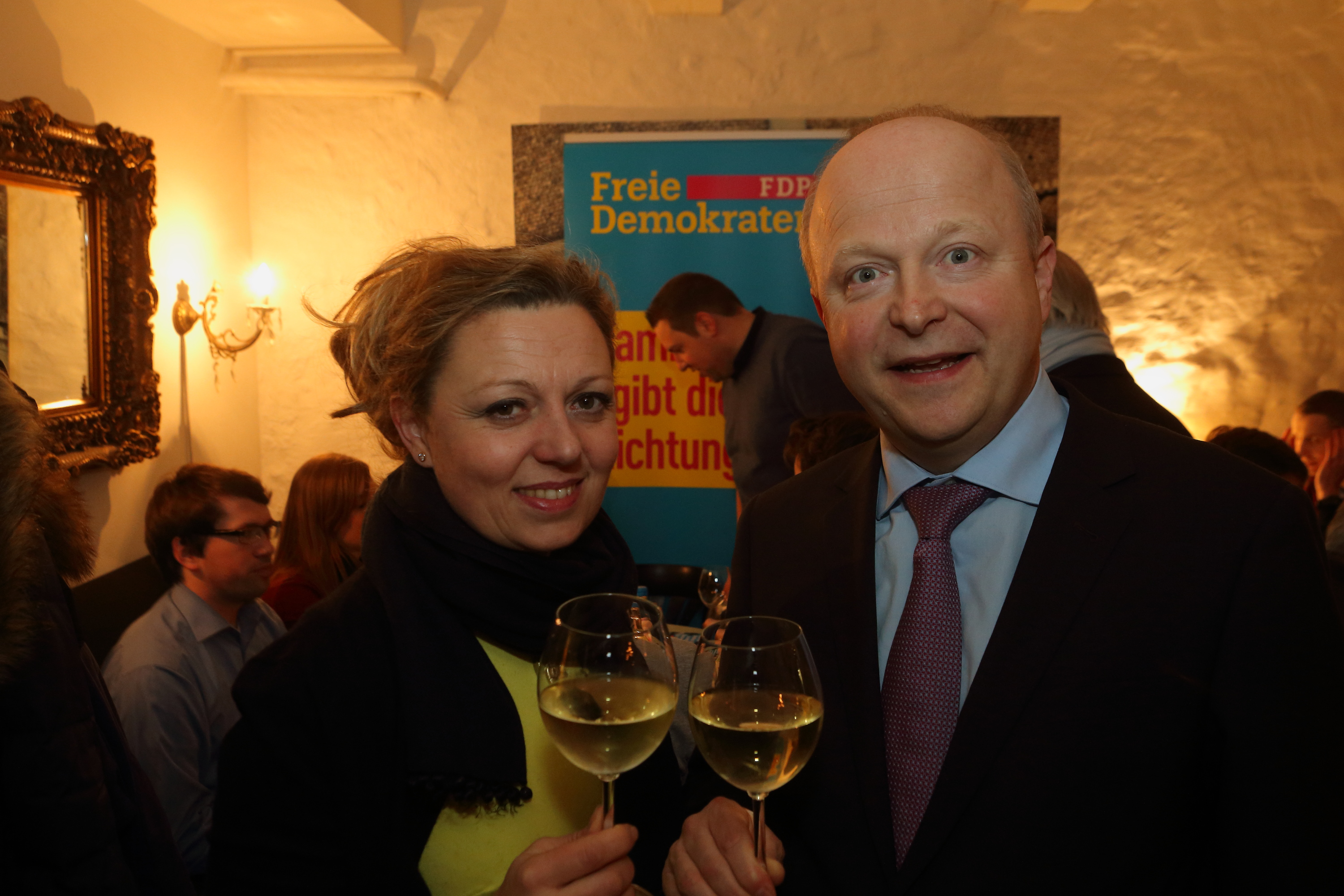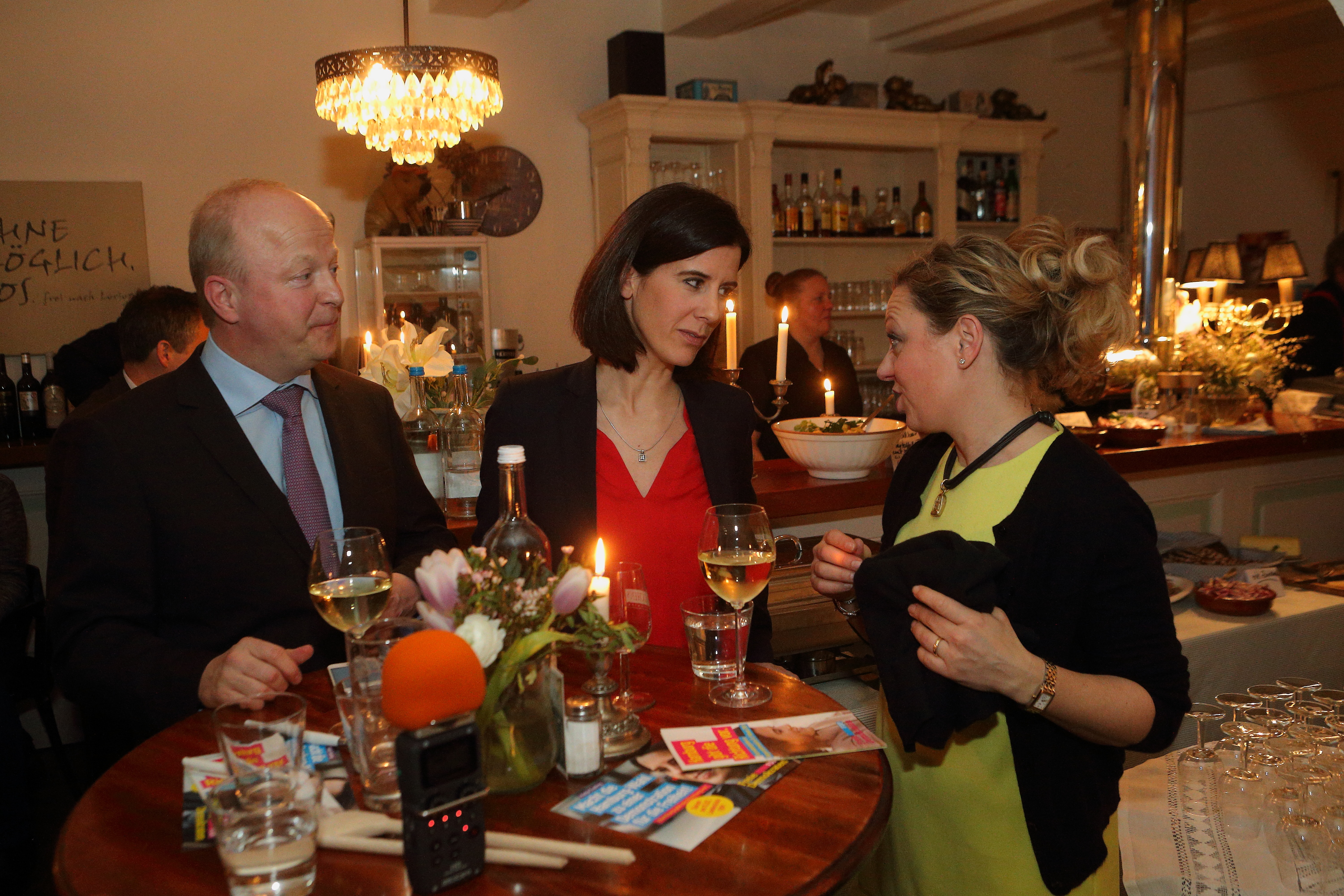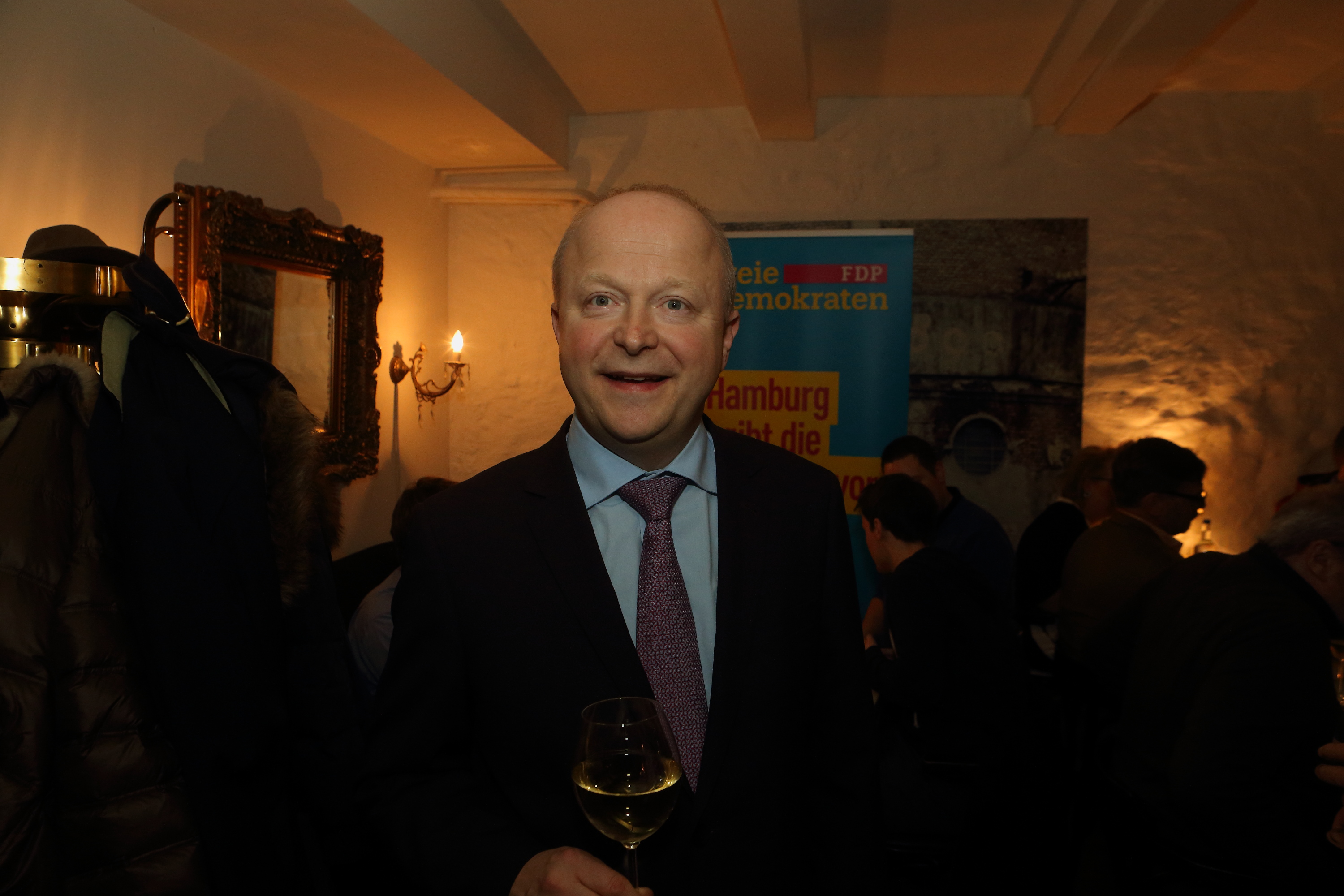 11.02.2015, Germany, Hamburg, FDP im Ha,burg Wahlkampf, Michael Theurer , FDP Landesvorsitzender Baden Wuerttemberg, laedt ein zur Matjes meets Maultaeschle Veranstaltung im Restaurant Perle ,Spitzenklandiatin Katja Suding und der Star Sommiliere Natalie Lumpp aus Baden Baden. Und es mundete mit den Beiträgen ; Hafenausbaui, Elbvertiefung und Hochschulpolitik sowie fruehkindlicher Bildung. Theure eher pragmatisch mit den Bruesseler Themen TTIP , Mittelstaendische Wirtschaft und Innovationskraft und ihre Foerderung. Natalie Lumpp beriet die Gaesten dann in dem was vielleicht in den anderen Beitraegen fehlte , die Steillagen und ihre CHance fuer den Sauvignon Blanc. Ein Wein den sie dringend der FDP empfiehlt