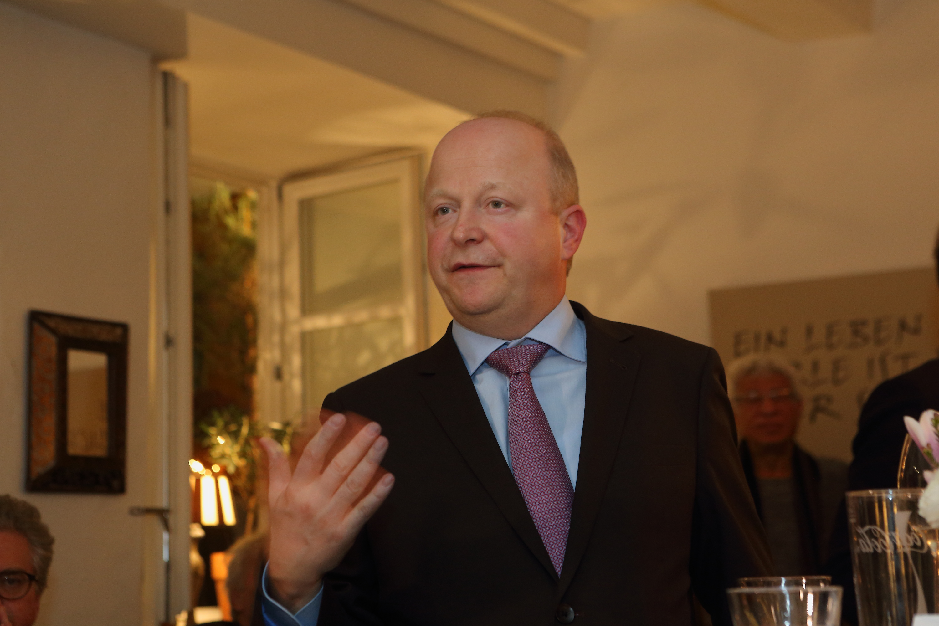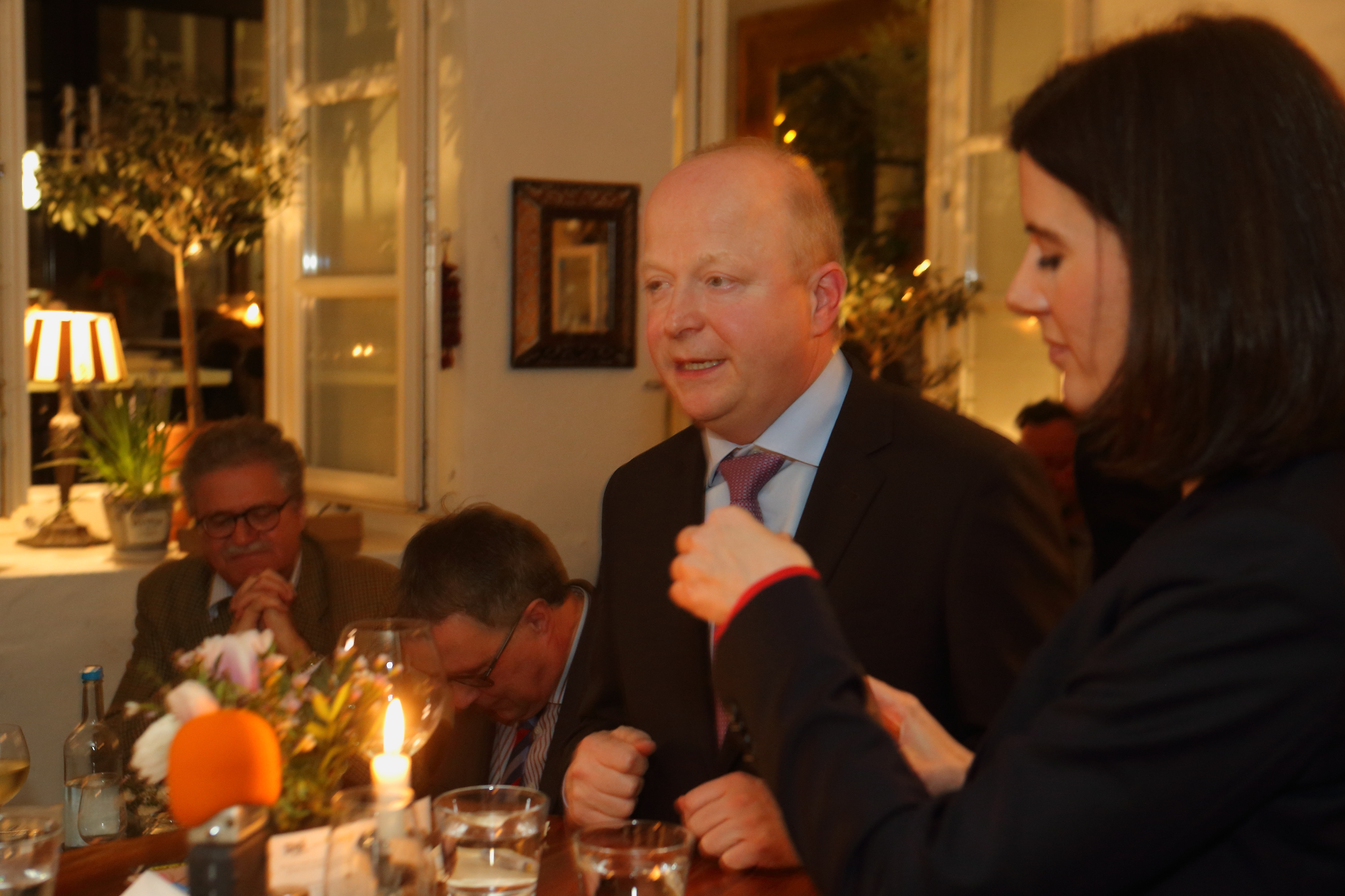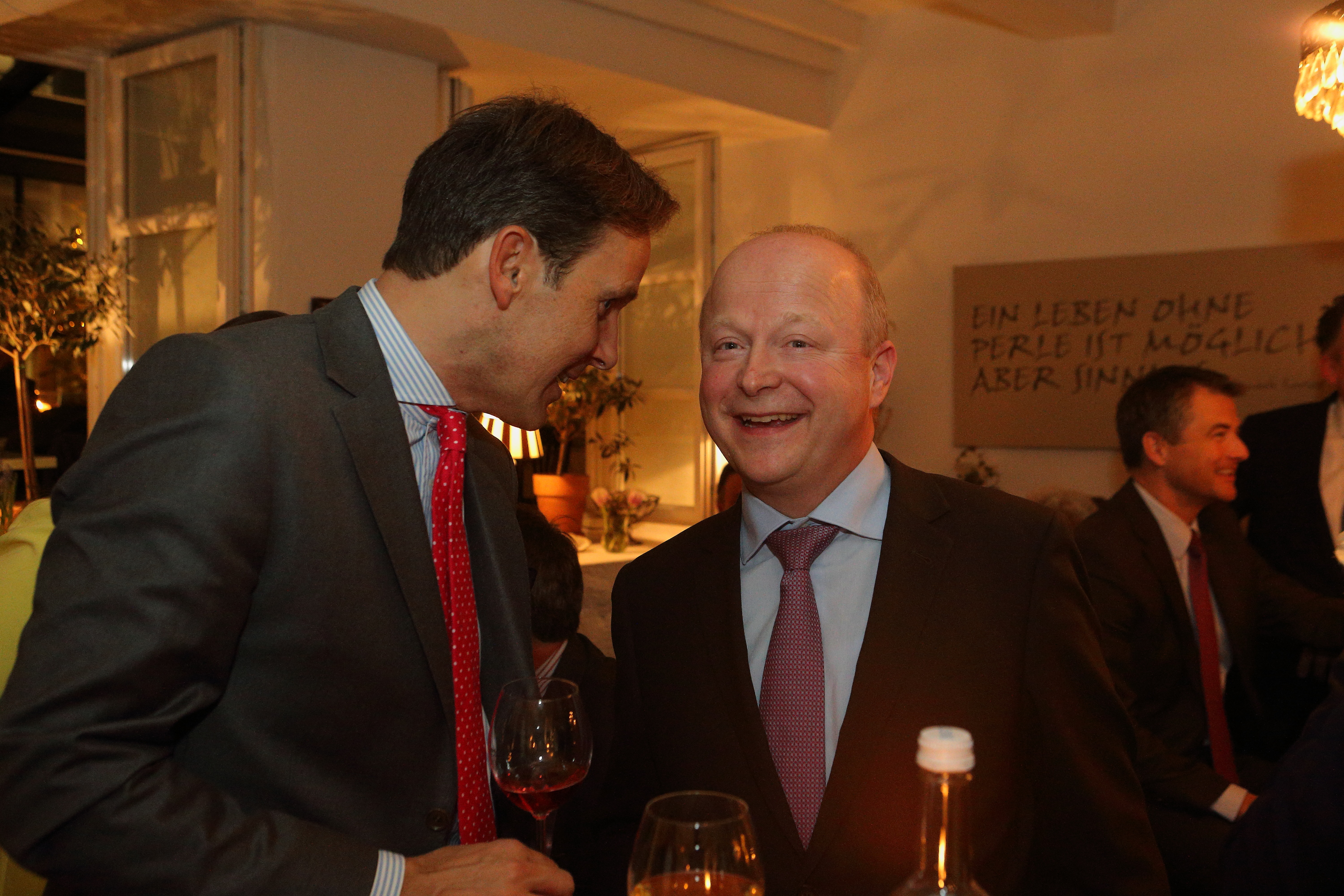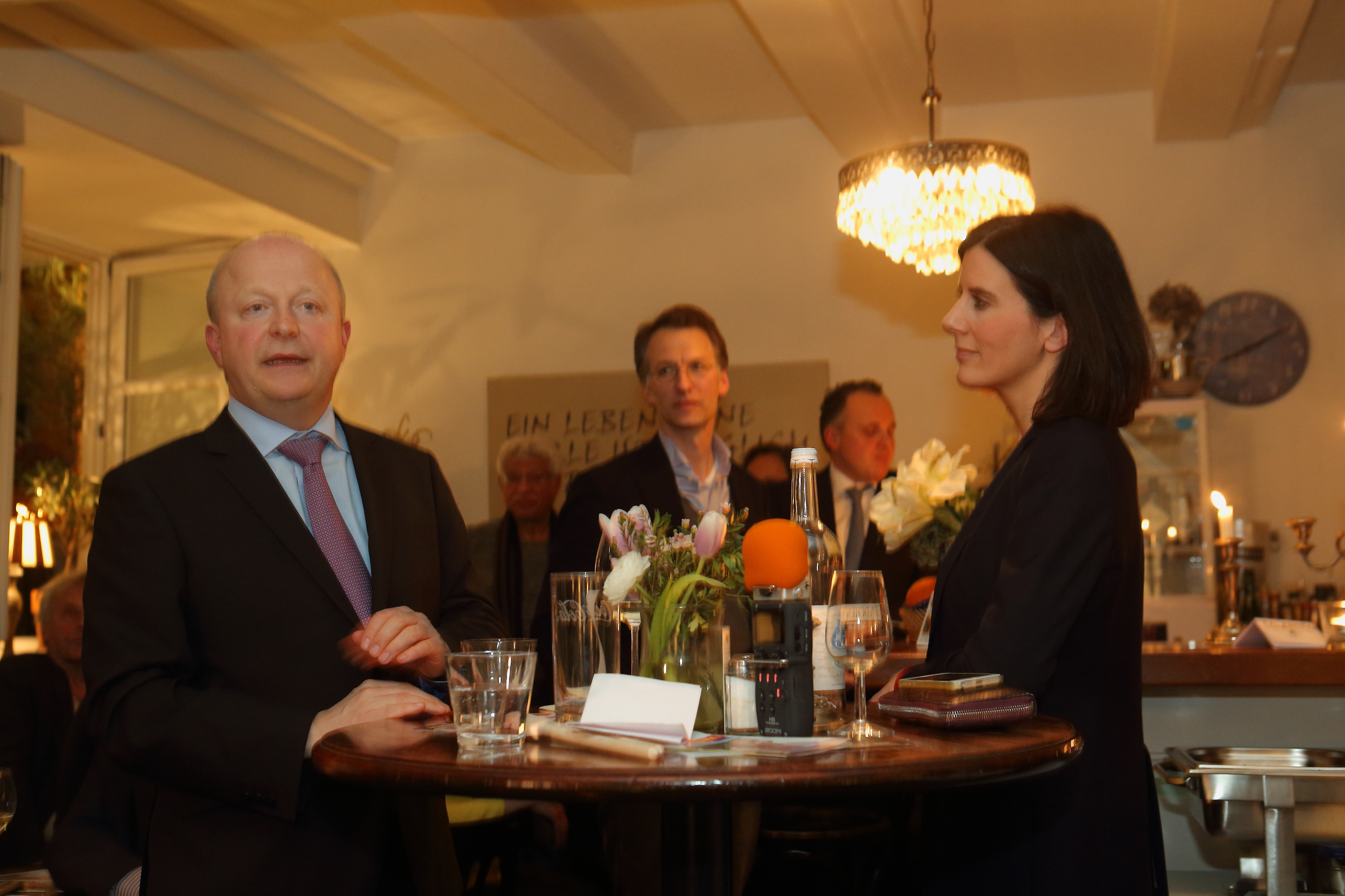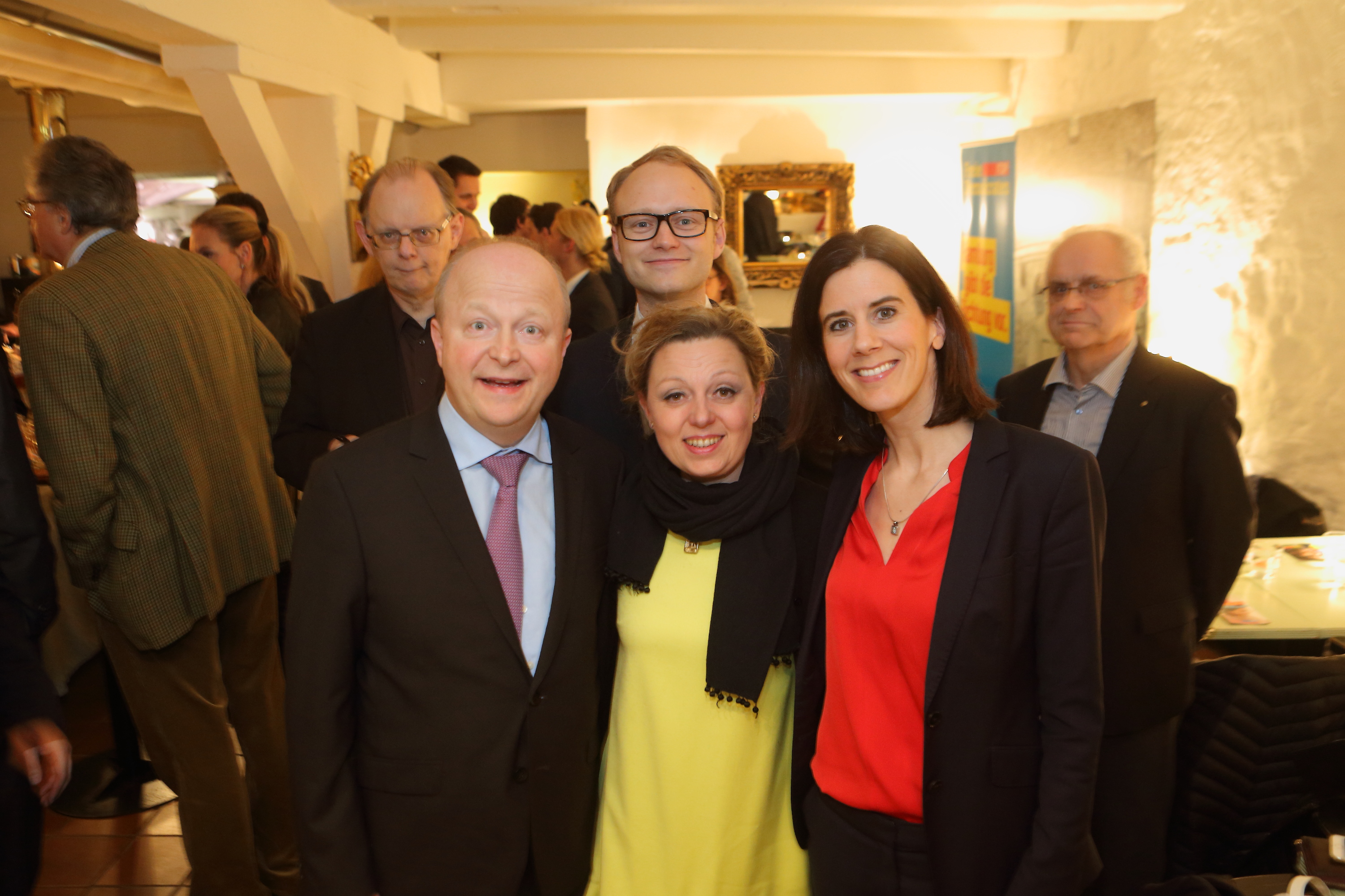 11.02.2015, Germany, Hamburg, FDP im Ha,burg Wahlkampf, Michael Theurer , FDP Landesvorsitzender Baden Wuerttemberg, laedt ein zur Matjes meets Maultaeschle Veranstaltung im Restaurant Perle ,Spitzenklandiatin Katja Suding und der Star Sommiliere Natalie Lumpp aus Baden Baden. Und es mundete mit den Beiträgen ; Hafenausbaui, Elbvertiefung und Hochschulpolitik sowie fruehkindlicher Bildung. Theure eher pragmatisch mit den Bruesseler Themen TTIP , Mittelstaendische Wirtschaft und Innovationskraft und ihre Foerderung. Natalie Lumpp beriet die Gaesten dann in dem was vielleicht in den anderen Beitraegen fehlte , die Steillagen und ihre CHance fuer den Sauvignon Blanc. Ein Wein den sie dringend der FDP empfiehlt